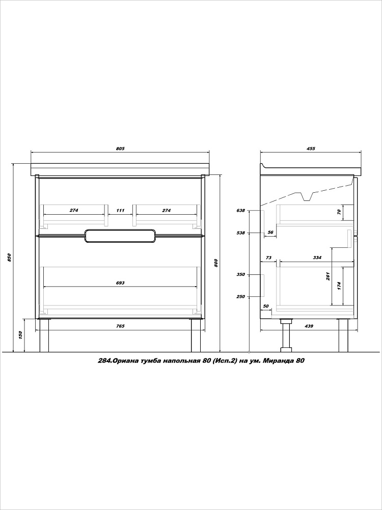 Мебель для ванной комнаты SanStar Ориана 80 напольная, раковина Santek Миранда 80