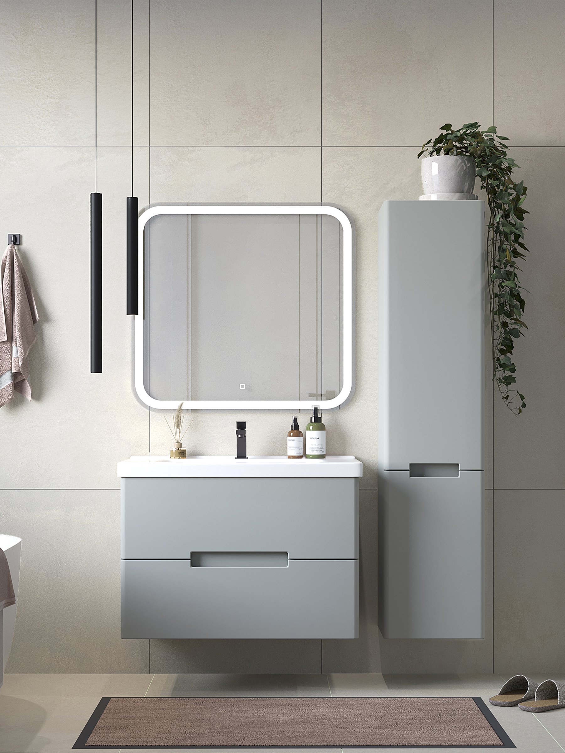 Отзывы о Мебель для ванной комнаты SanStar Ориана 80 подвесная, серая, раковина Dreja Harmony 80