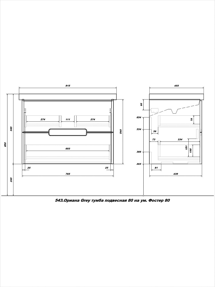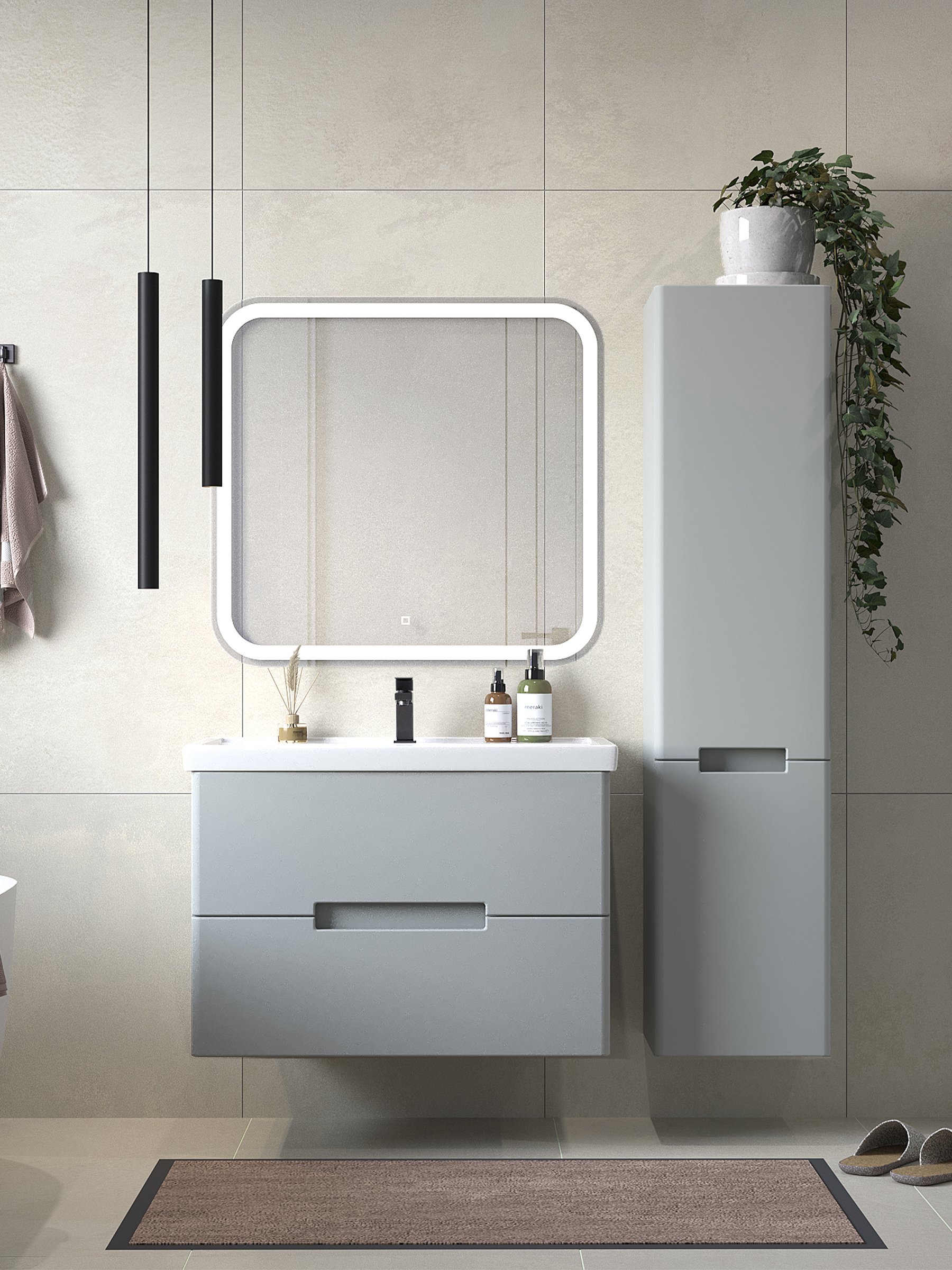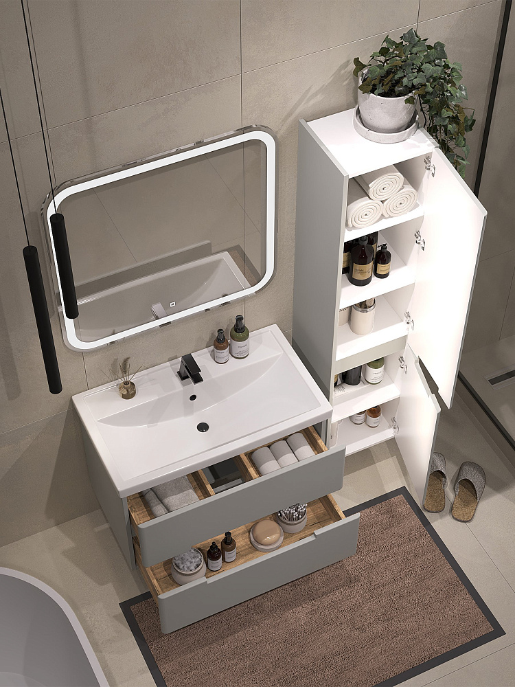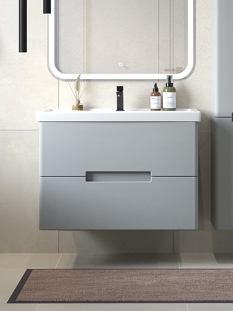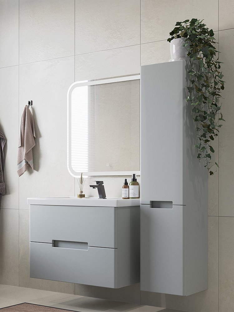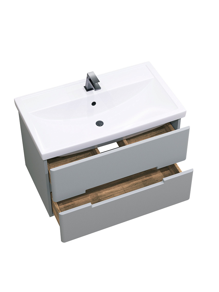 Мебель для ванной комнаты SanStar Ориана 80 подвесная, серая, раковина Kirovit Фостер 80