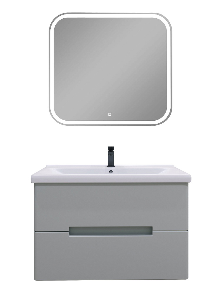 Мебель для ванной комнаты SanStar Ориана 80 подвесная, серая, раковина Santek Миранда 80
