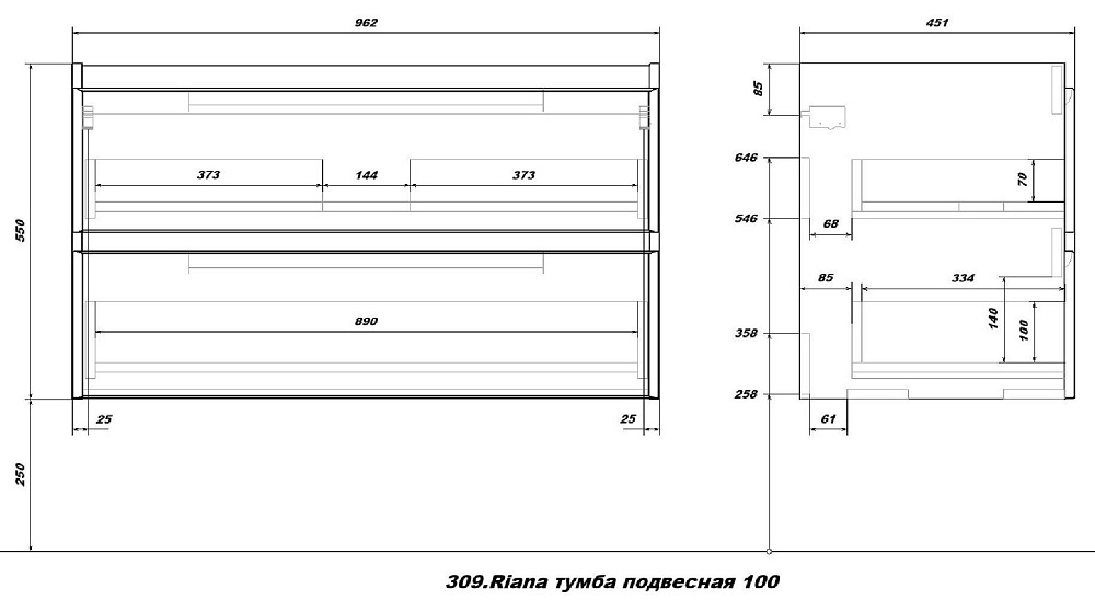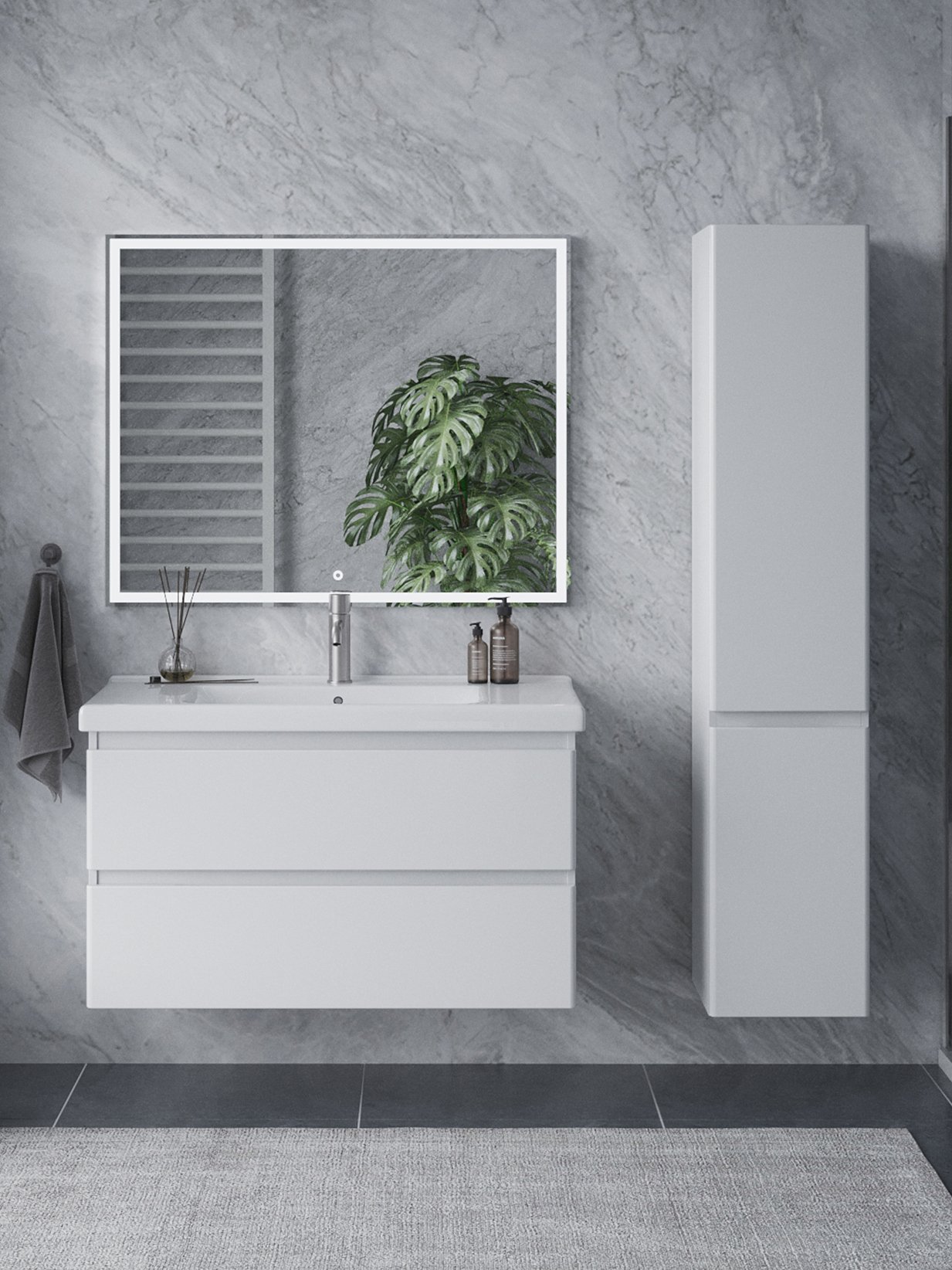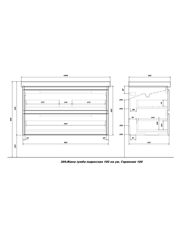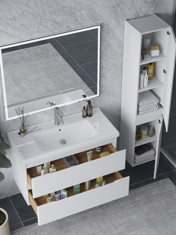 Мебель для ванной комнаты SanStar Riana 100 подвесная, белая, раковина Гармония 100