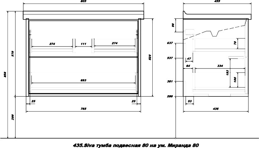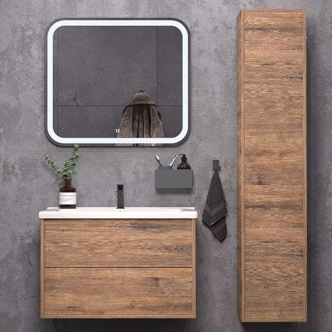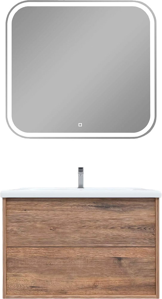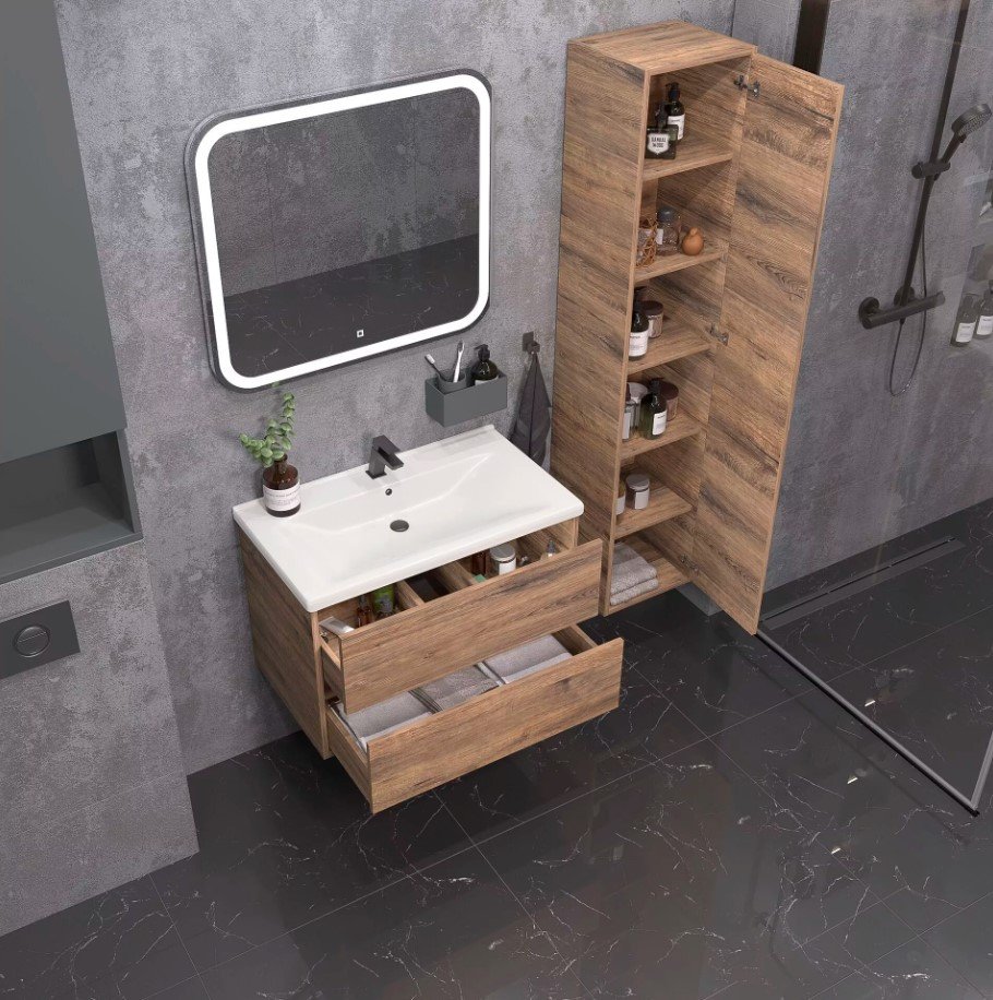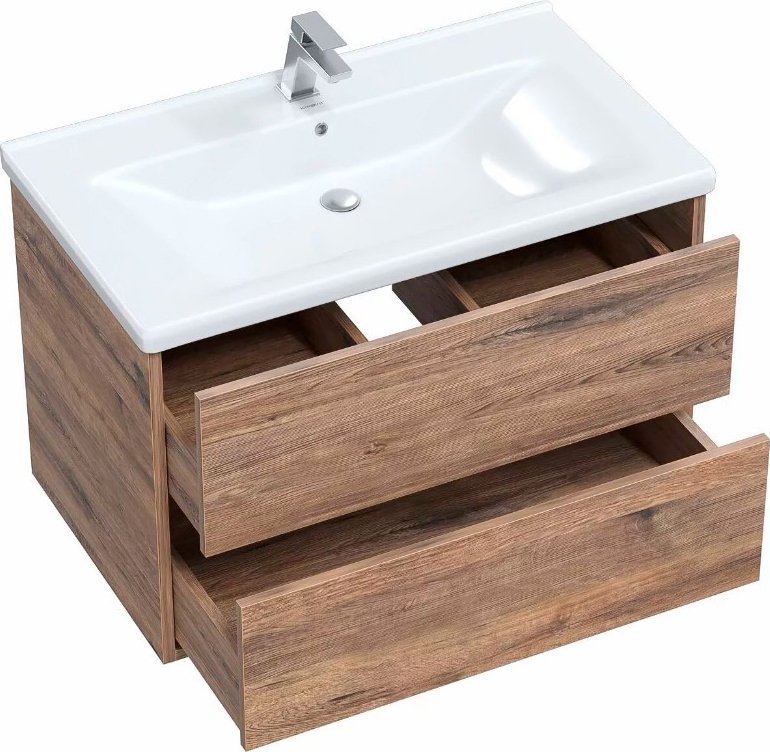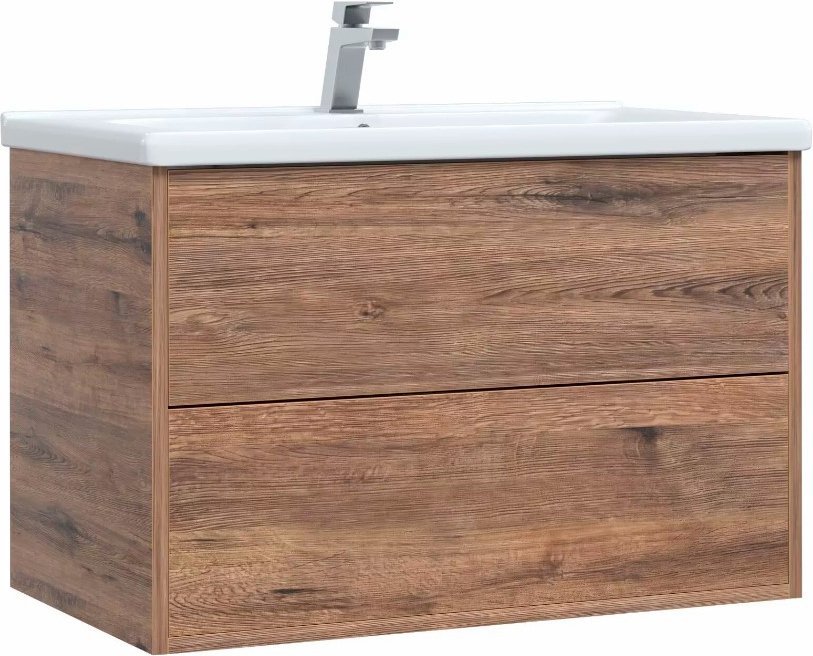 Мебель для ванной комнаты SanStar Siva 80 подвесная, дуб веллингтон табак, раковина Миранда