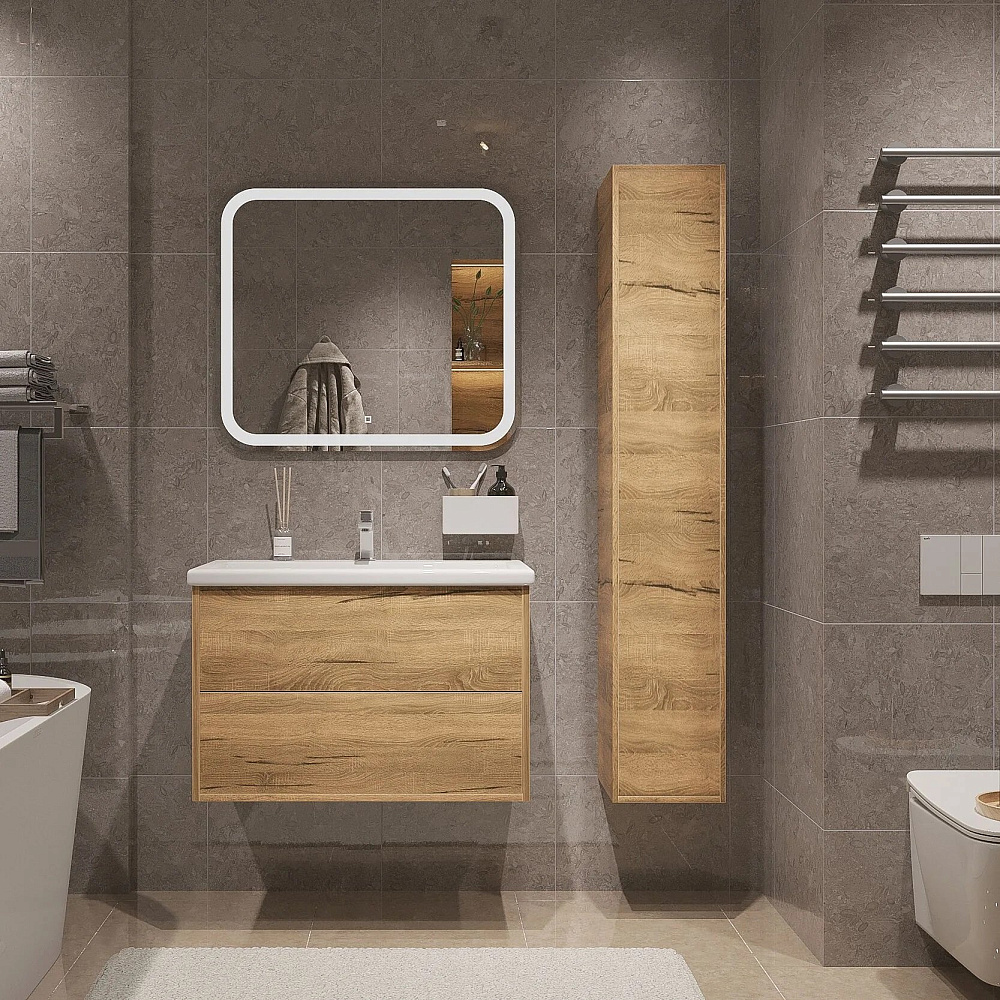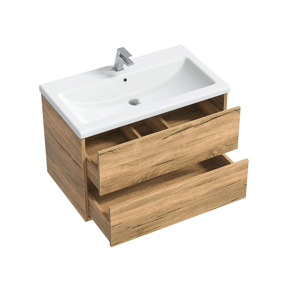 Мебель для ванной комнаты SanStar Siva 80 подвесная, дуб вотан, раковина Миранда
