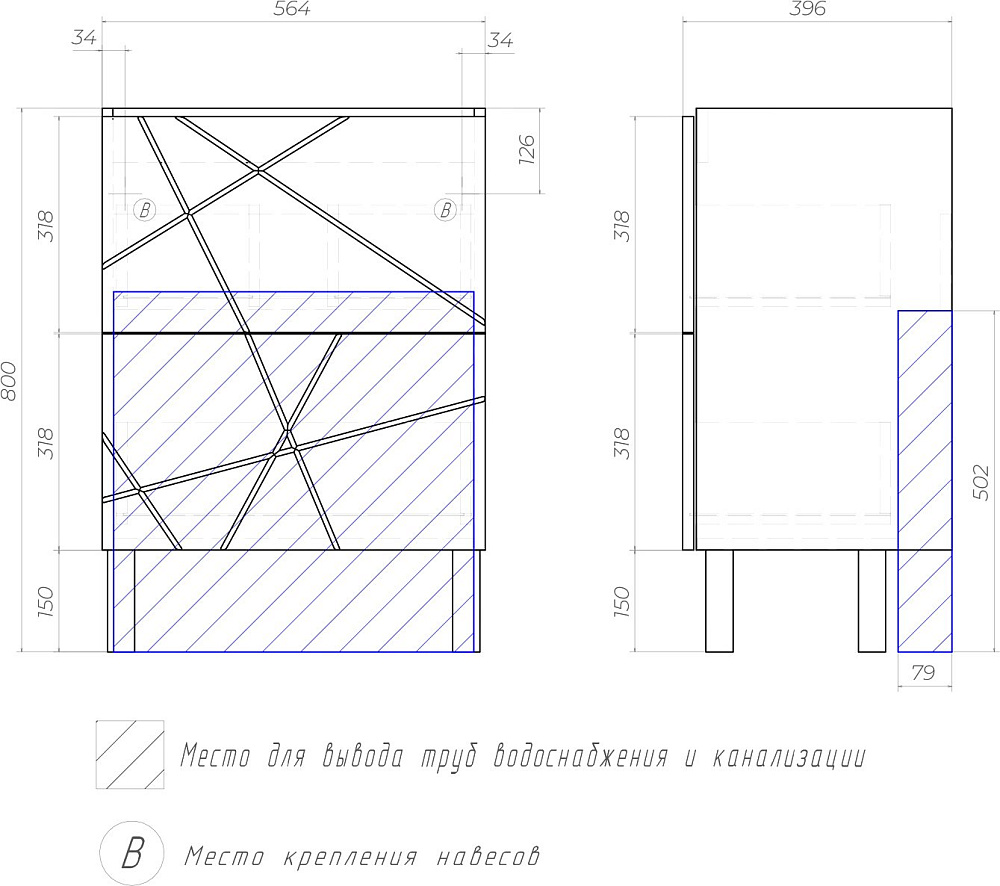 Мебель для ванной комнаты Vigo Geometry 60 напольная, бетон, раковина Cersanit Como 60