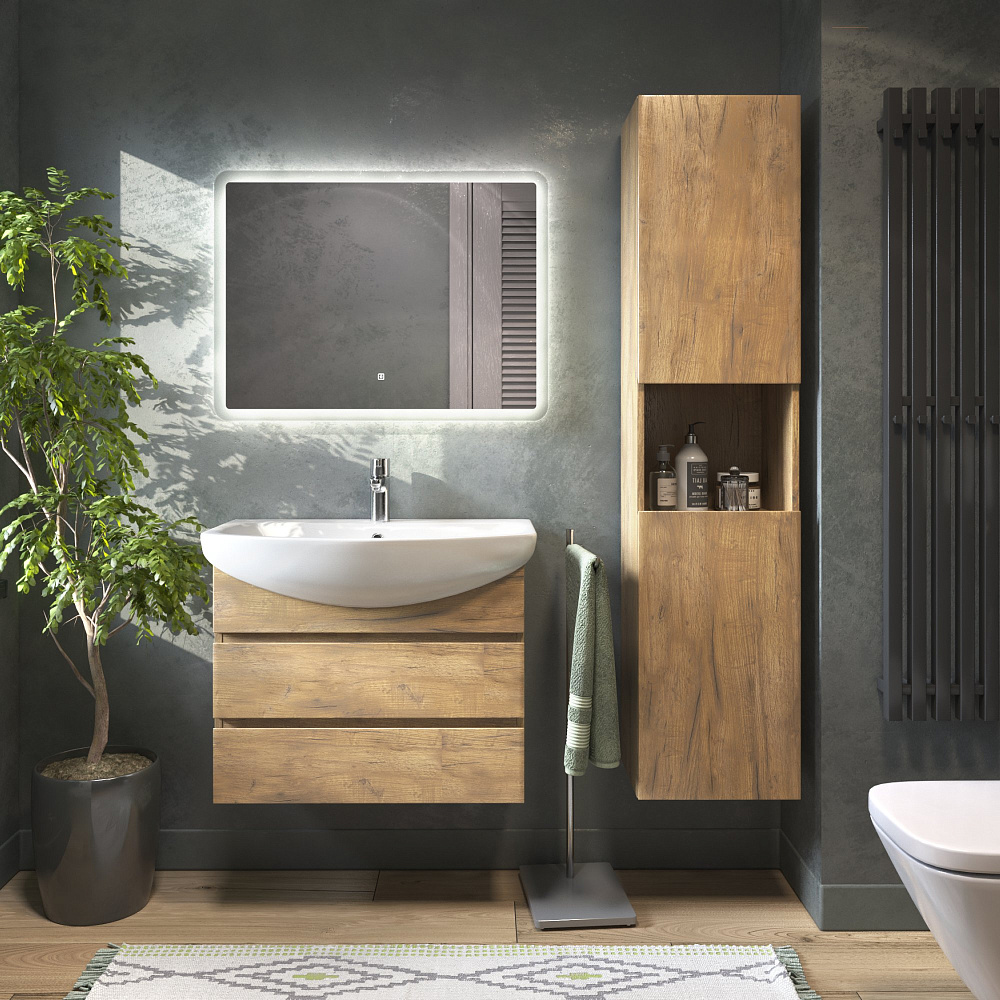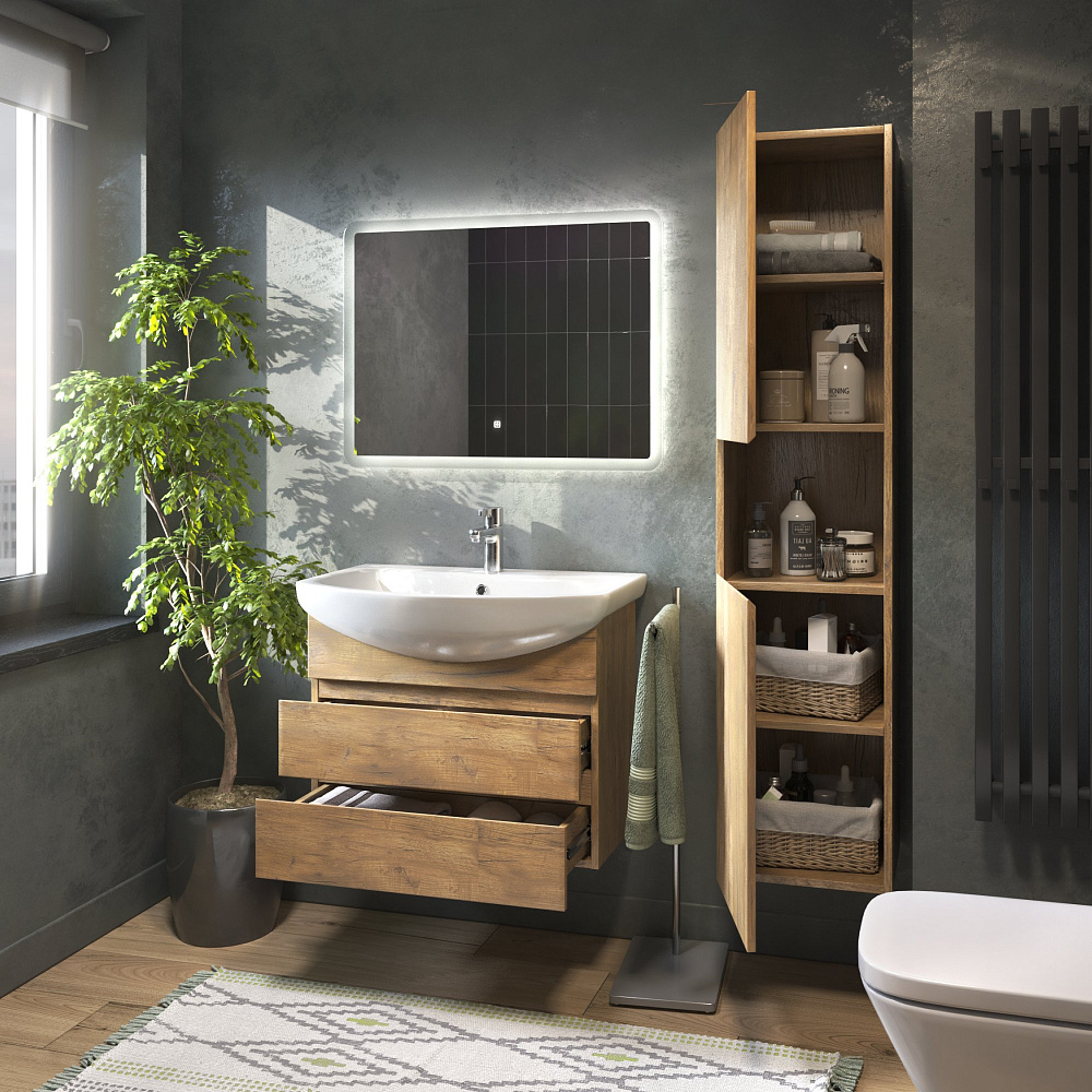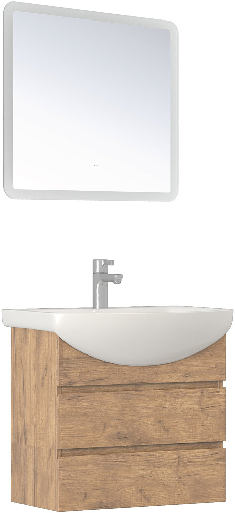 Мебель для ванной комнаты Vigo Wing 60 подвесная, 2 ящика, дуб золотой, раковина Балтика 60