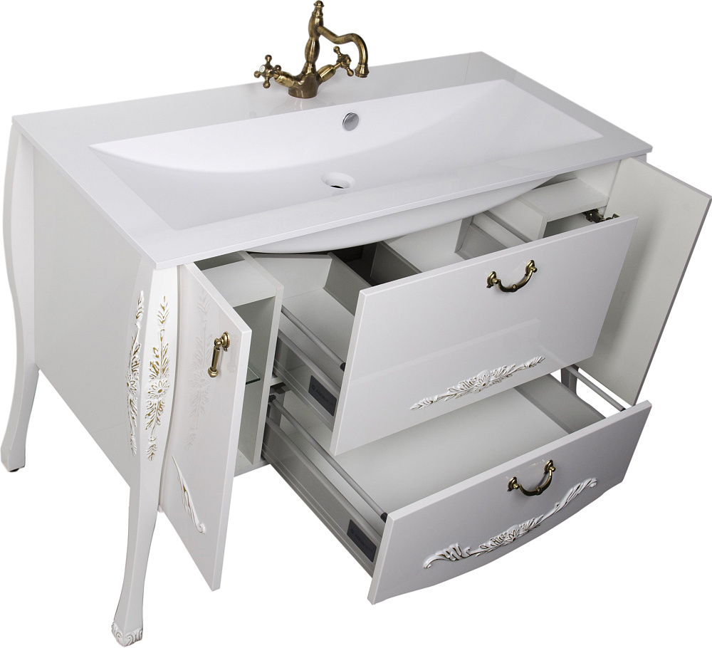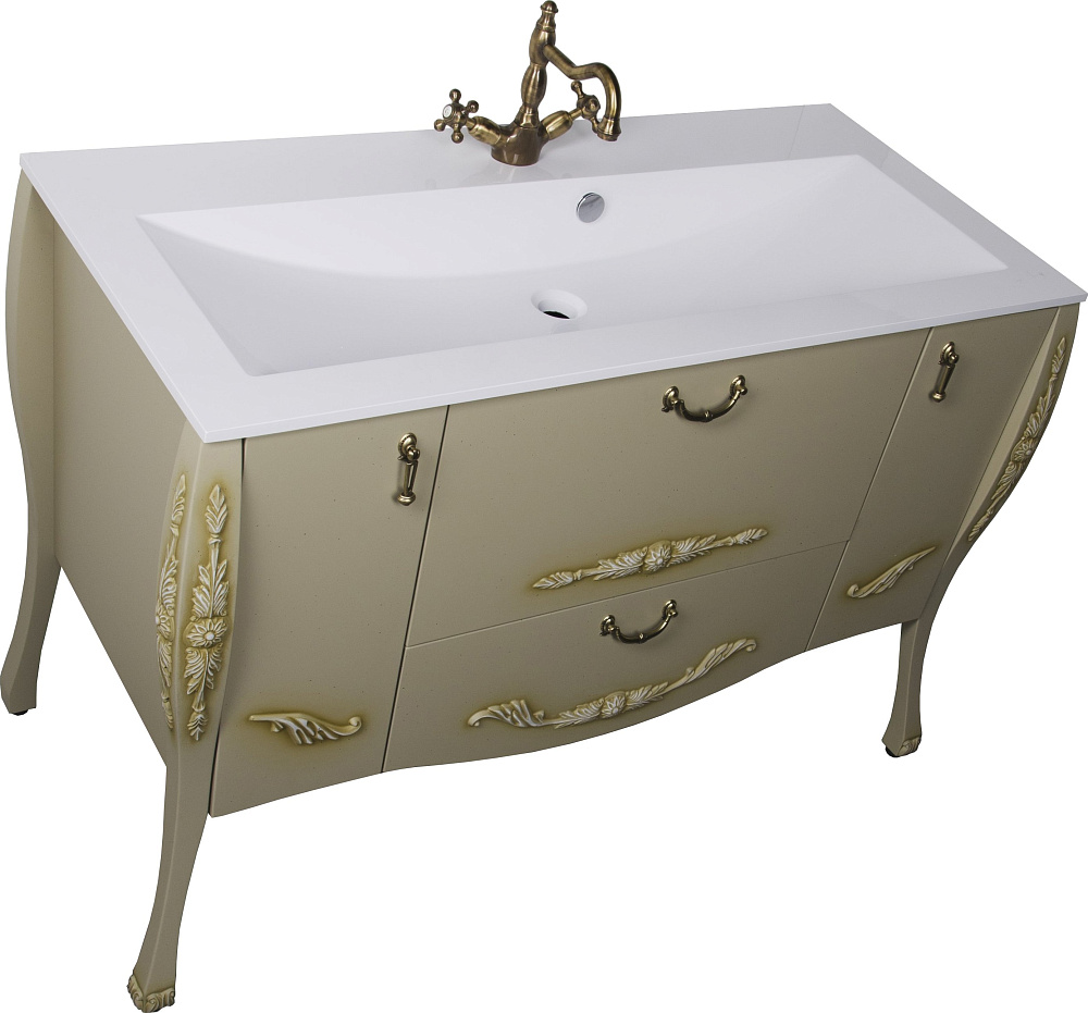 Мебельная раковина Aquanet Мадонна Marmite Mikaela 121 накладная, белая, прямоугольная, искусственный мрамор