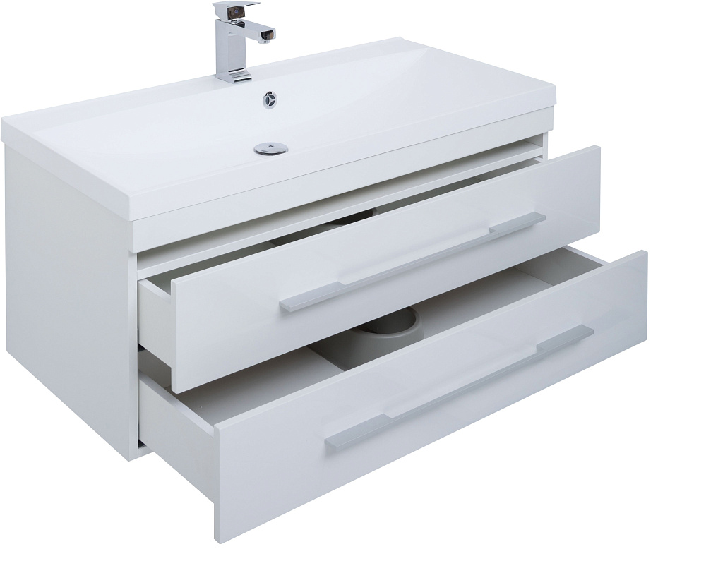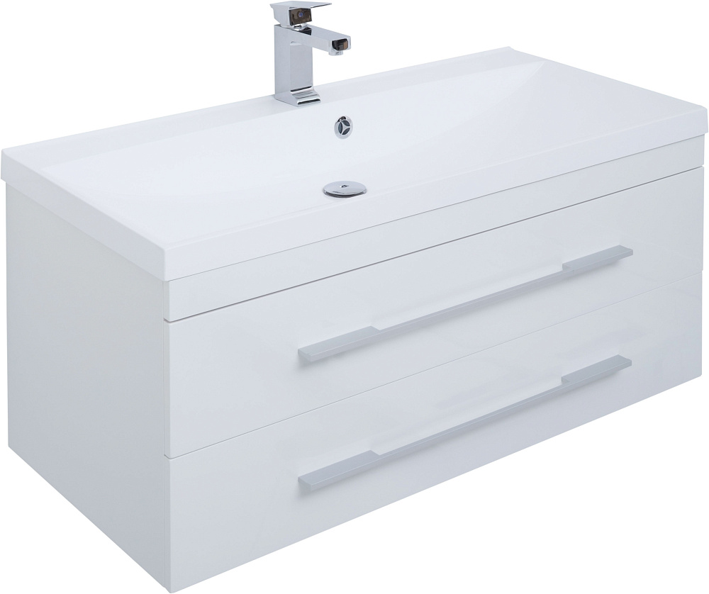Мебельная раковина Aquanet Нота 204096100 накладная, белая, прямоугольная, искусственная мрамор