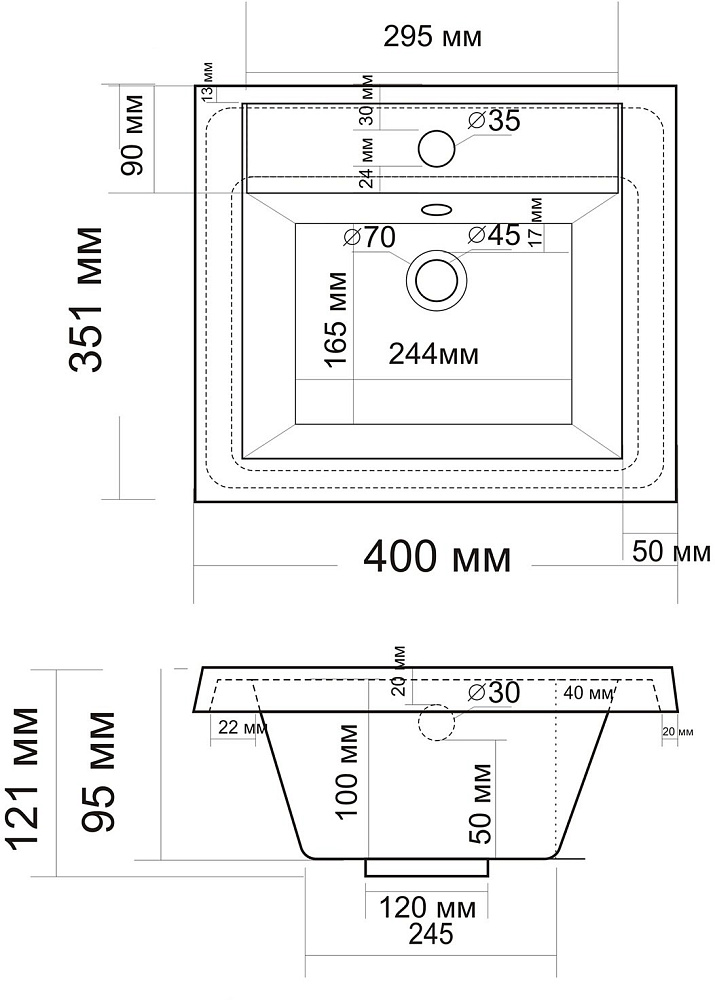 Мебельная раковина Misty Алиса 40 накладная, белая, прямоугольная