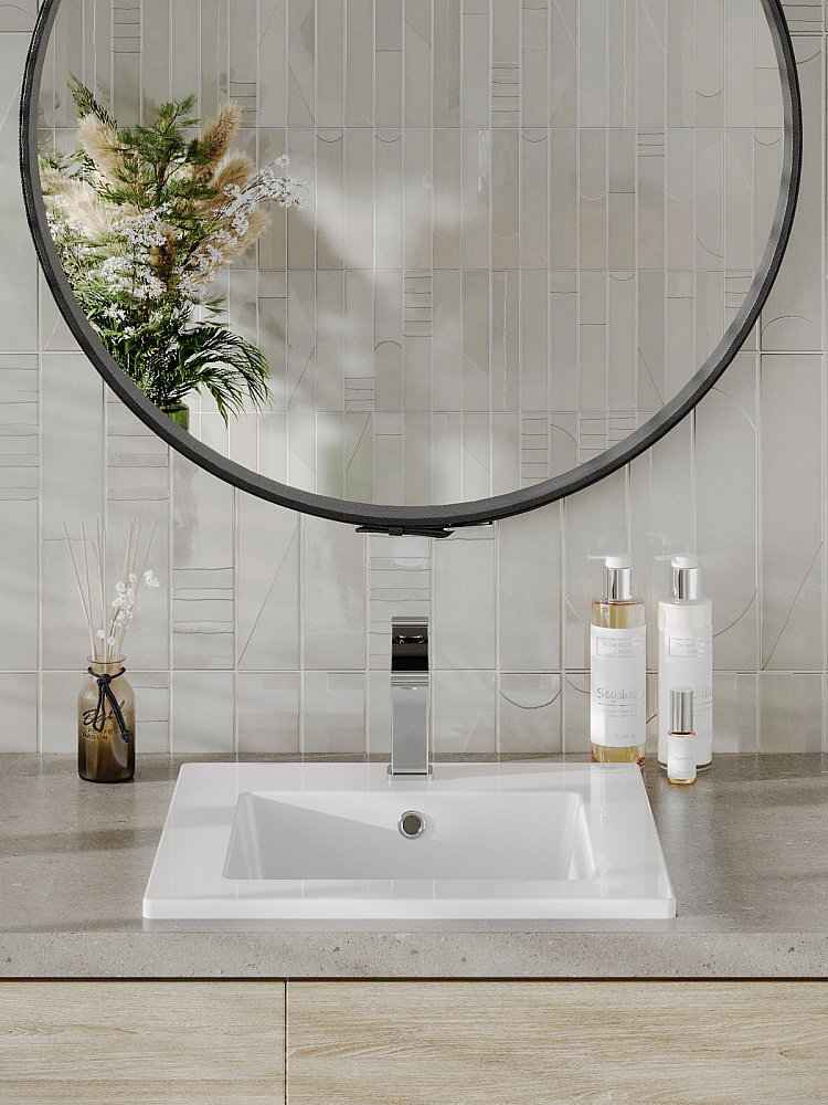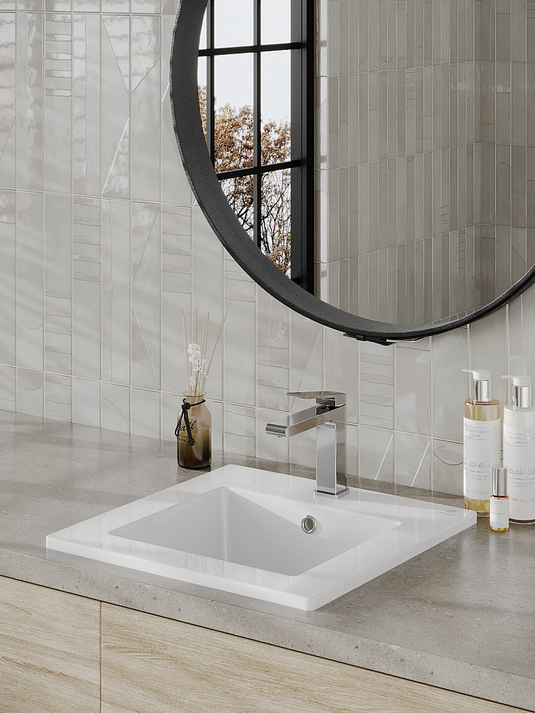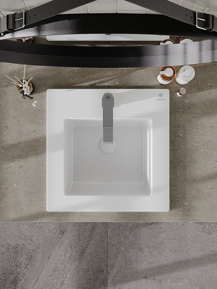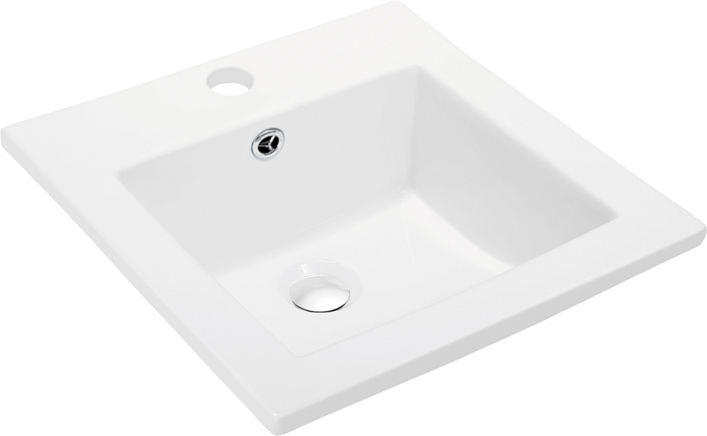 Мебельная раковина Orange B03-410W 42 встраиваемая сверху, глянцевая белая, квадратная, фарфор