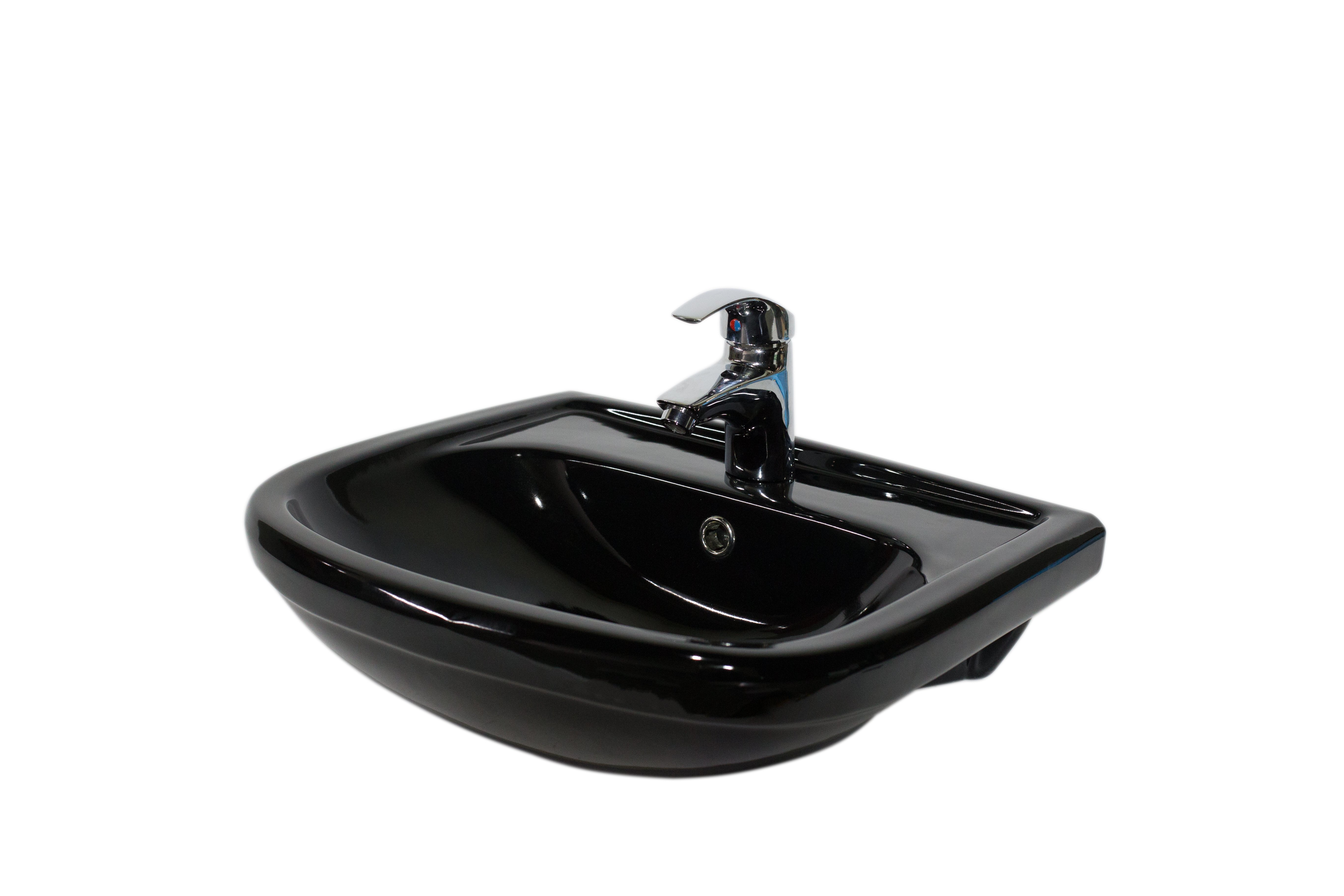 Отзывы о Мебельная раковина Оскольская керамика Альфана 52 накладная, глянцевая черный, полукруглая, фарфор