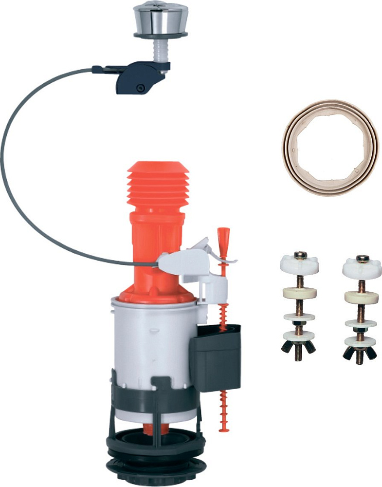 Сливной механизм Wirquin MW2 — это надёжное и удобное решение для бачка унитаза. Он представляет собой двухрежимный тросиковый механизм с гофрированным переливом. Благодаря тросику, этот сливной механизм не требует никакой регулировки, что упрощает его использование и обслуживание. Гофрированный раздвижной клапанодержатель подходит под высокие бачки, позволяя легко адаптировать механизм под различные размеры. Кнопка механизма подходит для всех крышек с отверстием от 14 до 46 мм, что делает его универсальным решением для керамических и пластиковых бачков. Одним из главных преимуществ этого механизма является гарантия в 200 000 нажатий, что подтверждает его надёжность и долговечность. Механизм позволяет компенсировать расстояние между несцентрированными отверстиями крышки и бачка, обеспечивая надёжную и герметичную работу. Кроме того, кнопка механизма имеет гальваническое хромированное покрытие, которое не только придаёт ему эстетичный вид, но и защищает от коррозии и повреждений. Wirquin — это французская компания, которая является ведущим предприятием в сфере производства сантехнической арматуры и аксессуаров. За годы своего развития компания укрепила свои позиции не только во Франции, но и за рубежом, став международной Группой компаний. Сливная тросиковая арматура Wirquin успешно продаётся уже более 40 лет благодаря надёжному качеству и лёгкости установки.