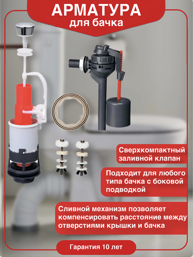 Механизм смыва для бачка Wirquin Topy — это однокнопочная арматура MP с заливным клапаном «Topy» боковой подводки. Она разработана французской компанией Wirquin, которая является ведущим предприятием в сфере производства сантехнической арматуры и аксессуаров. За годы своего развития компания Wirquin укрепила свои позиции не только во Франции, но и за рубежом, став международной Группой компаний. Её продукция неоднократно удостаивалась премий на международных выставках за дизайн и инновационные решения. Однокнопочная арматура MP с заливным клапаном «Topy» подходит для бачков с боковой подачей воды. Система механизма MP «с пяткой» позволяет компенсировать расстояние между несцентрованными отверстиями крышки и бачка, что обеспечивает лёгкость установки и универсальность использования. Механизм не держит крышку бачка, что позволяет поднимать её без разборки механизма. Это делает эксплуатацию бачка максимально удобной и простой. Сверхкомпактный заливной клапан подходит для всех видов бачков с боковой подачей воды, что делает арматуру MP идеальным выбором для любого типа бачка. Боковая подводка обеспечивает удобство монтажа и эксплуатации, а пластиковый винт 1½" упрощает процесс установки. Таким образом, механизм смыва для бачка Wirquin Topy — это надёжное, удобное и универсальное решение, которое обеспечит комфорт и долговечность использования вашего унитаза.
