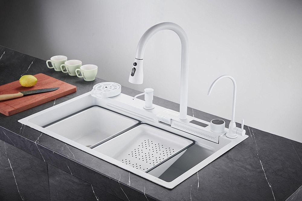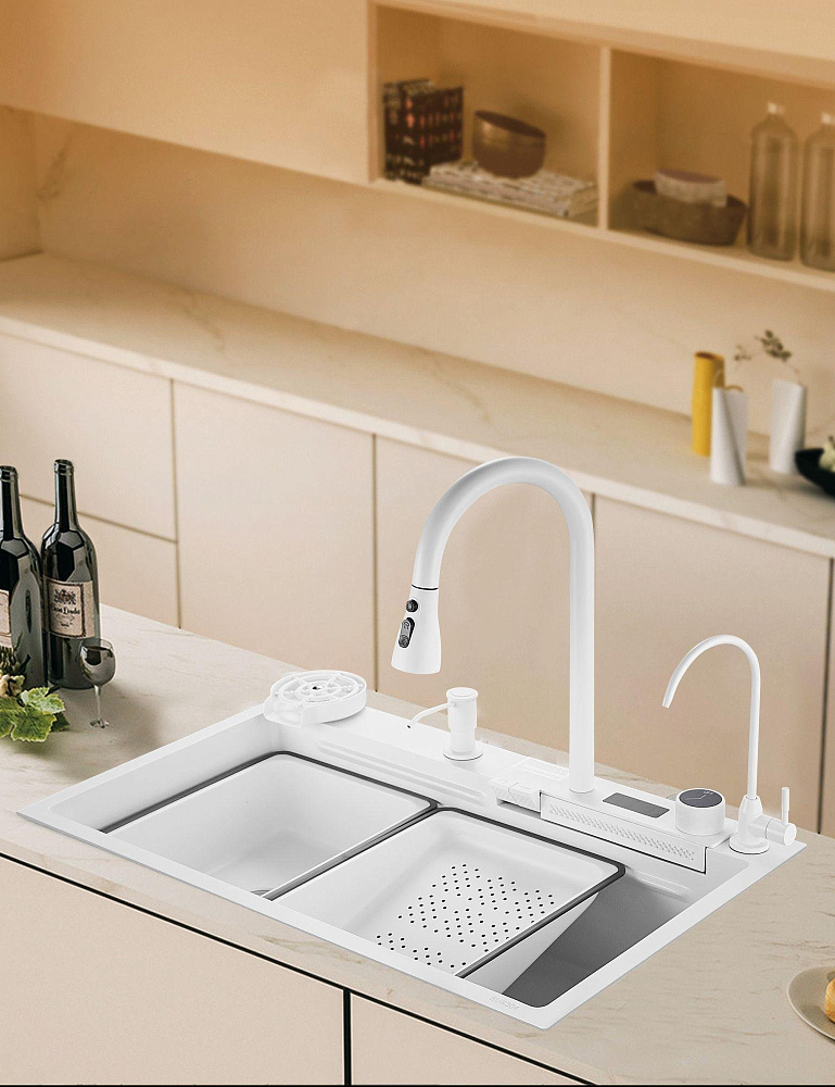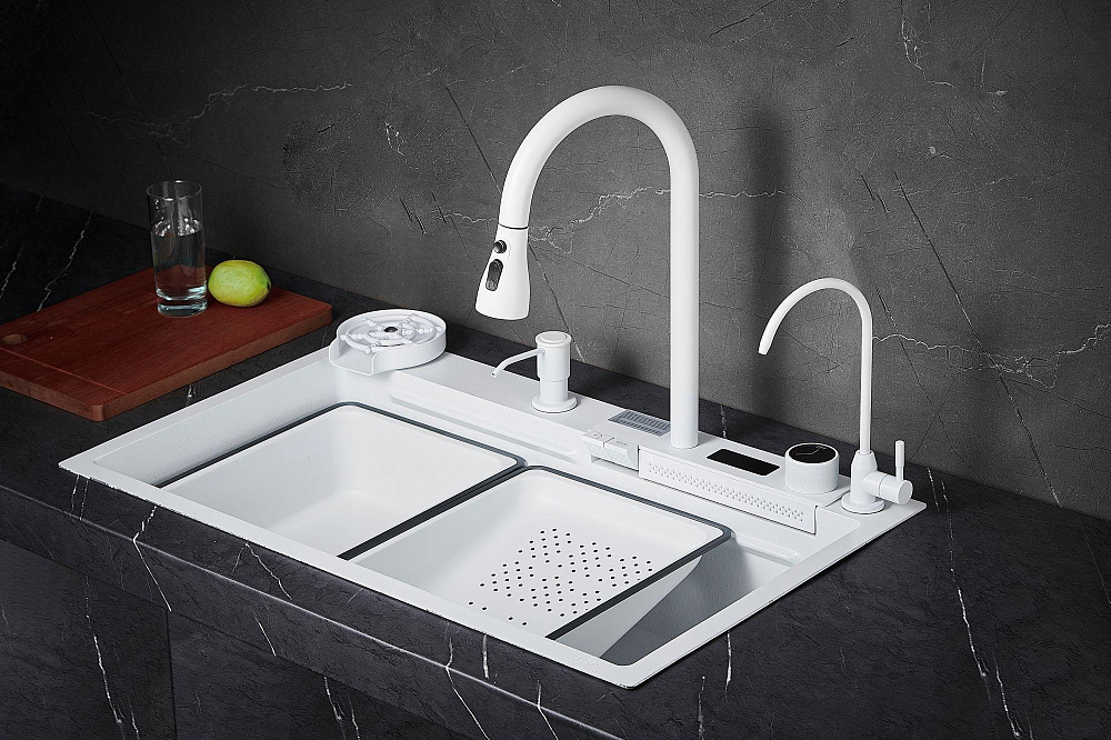 Комплект Savol S-SC002W — это идеальное решение для вашей кухни. Он включает в себя мойку с панелью, на которой расположены смеситель, кран для питьевой воды (для подключения к фильтру) и функция ополаскивания стакана. Одним из главных преимуществ этого комплекта является наличие шумоизолирующего слоя и специальных накладок на обратной стороне мойки. Это позволяет снизить уровень шума во время использования и обеспечить долговечность и надёжность конструкции. Боковой отвод воды — ещё одна удобная функция, которая упрощает использование мойки и предотвращает образование луж на поверхности. Высококачественное покрытие в форме сот придаёт мойке большую износостойкость и помогает ей прекрасно сопротивляться воздействию агрессивных веществ. Это означает, что мойка сохранит свой первоначальный вид и функциональность на протяжении долгого времени. Олеофобное покрытие на поверхности мойки облегчает процесс очистки от загрязнений и создаёт дополнительную антикоррозионную защиту. Благодаря этому покрытию, мойка будет выглядеть как новая даже после многократного использования. Два режима душа делают использование мойки ещё более комфортным и удобным. Вы сможете легко и быстро ополоснуть посуду или фрукты, выбрав подходящий режим струи воды. Комплект Savol S-SC002W — это не просто мойка, это продуманное и функциональное решение для вашей кухни, которое обеспечит вам комфорт и удобство на долгие годы.