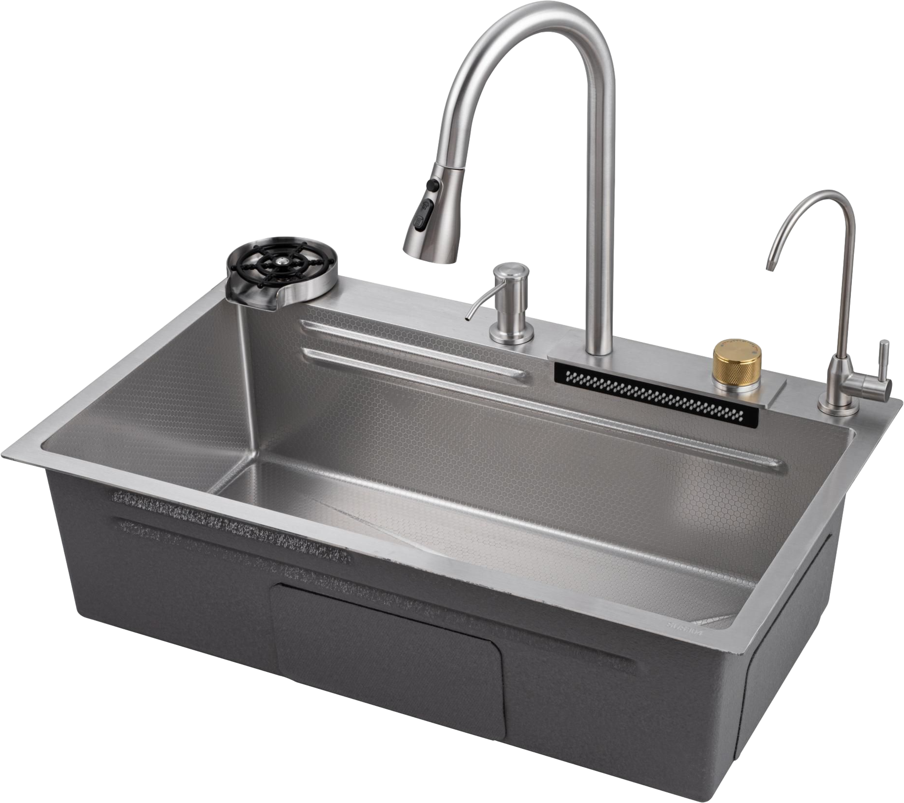 Комплект Savol S-SC003L с водопадом, сатин — это идеальное решение для вашей кухни. Он включает в себя мойку с панелью, на которой расположены смеситель, кран для питьевой воды (для подключения к фильтру) и функция ополаскивания стакана. Одним из главных преимуществ этого комплекта является наличие шумоизолирующего слоя и специальных накладок на обратной стороне мойки. Это позволяет снизить уровень шума во время использования и обеспечить комфорт в вашей кухне. Боковой отвод воды обеспечивает эффективное удаление воды и предотвращает образование луж на поверхности мойки. Высококачественное покрытие в форме сот придаёт мойке большую износостойкость и защищает её от воздействия агрессивных веществ. Это гарантирует долгий срок службы и сохранение привлекательного внешнего вида. Олеофобное покрытие на поверхности мойки облегчает процесс очистки от загрязнений и создаёт дополнительную антикоррозионную защиту. Благодаря этому покрытию, мойка остаётся чистой и блестящей даже после многократного использования. Два режима душа позволяют выбрать оптимальный вариант для ополаскивания посуды или овощей. Это делает использование мойки ещё более удобным и эффективным. Комплект Savol S-SC003L — это не только функциональное, но и стильное решение для вашей кухни. Он станет прекрасным дополнением к любому интерьеру и обеспечит вам комфорт и удобство в повседневной жизни.
