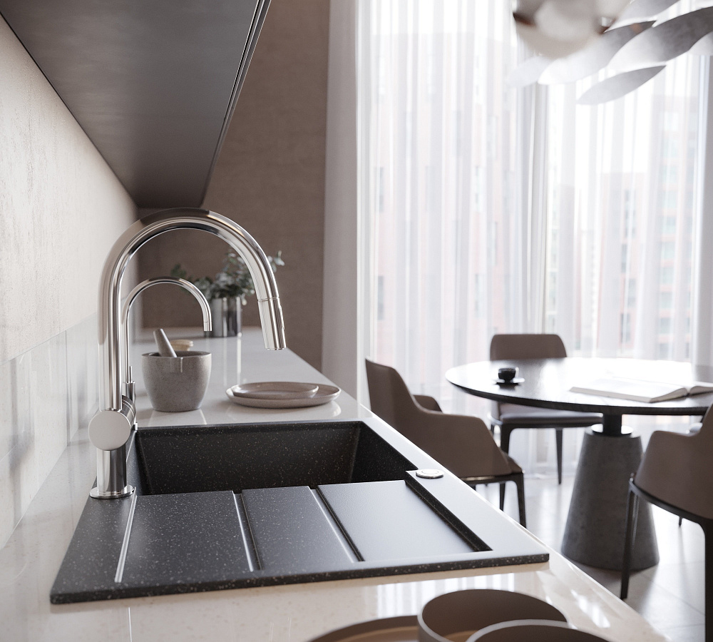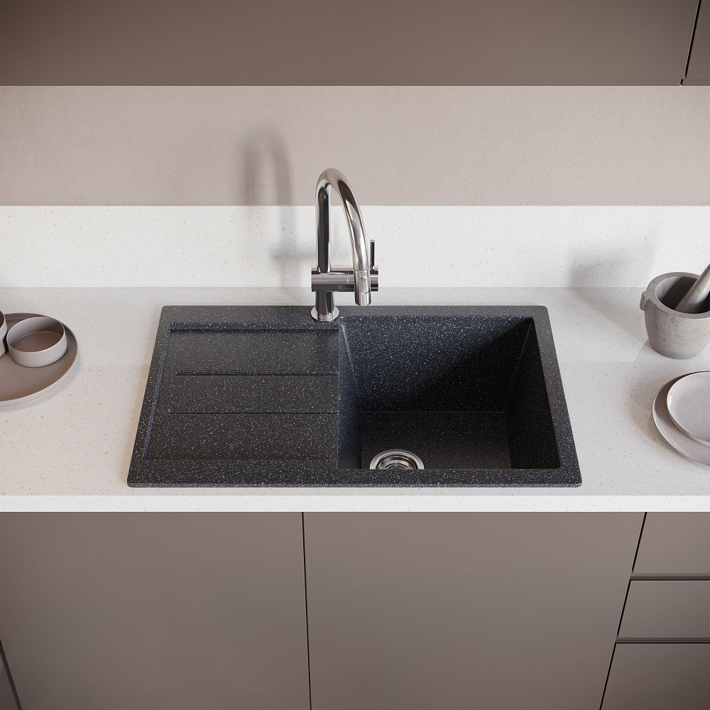 Мойка кухонная Domaci Бьелла DMC-25 — это идеальное решение для вашей кухни. Она сочетает в себе элегантный дизайн, прочность и функциональность. Двухконтурная поверхность чаши с шероховатым дном и гладкими стенками обеспечивает противоскользящий эффект, что делает мойку безопасной в использовании. Благодаря этой конструкции, разбрызгивание воды даже при сильном напоре сводится к минимуму, что помогает поддерживать чистоту на кухне. Верхний слой гелькоут образует декоративно-защитное покрытие с антибактериальным эффектом. Это не только придаёт мойке привлекательный внешний вид, но и обеспечивает дополнительную защиту от бактерий и микроорганизмов. Сочетание мраморной крошки и акриловых смол делает материал в 8 раз прочнее натурального мрамора. Это гарантирует долговечность и надёжность мойки, а также устойчивость к механическим повреждениям и царапинам. Продукция абсолютно безопасна. Эмиссия вредных веществ равна 0%, что подтверждается отсутствием характерного полихимического запаха. Вы можете быть уверены в качестве и безопасности мойки кухонной Domaci Бьелла DMC-25.