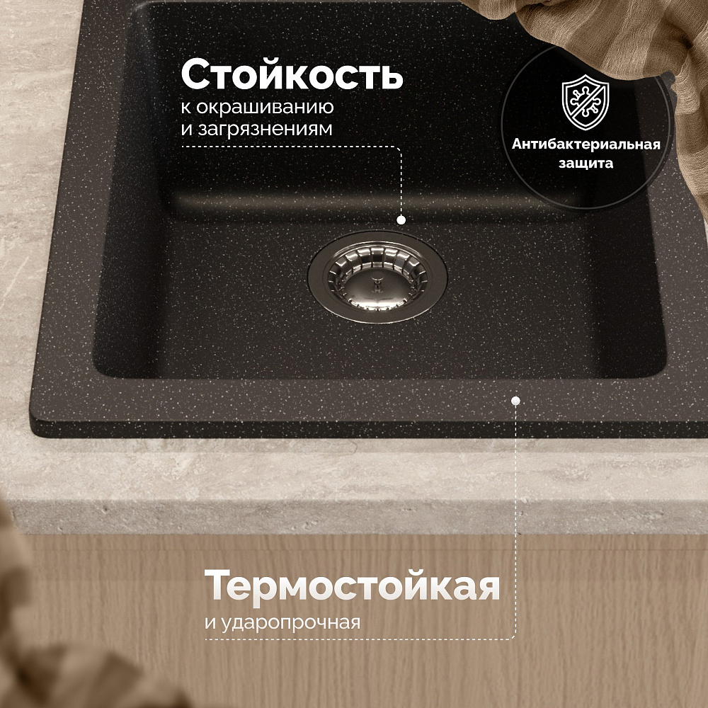 Мойка кухонная Domaci «Болонья М-08-002» — это идеальное решение для вашей кухни. Она сочетает в себе высокое качество, стильный дизайн и функциональность. Двухконтурная поверхность чаши с шероховатым дном и гладкими стенками обеспечивает противоскользящий эффект, что делает использование мойки более комфортным и безопасным. Это особенно важно при мытье посуды или продуктов, когда нужно быть уверенным в надёжном захвате. Кроме того, такая поверхность исключает разбрызгивание воды даже при сильном напоре, что помогает поддерживать чистоту и порядок на кухне. Верхний слой гелькоут образует декоративно-защитное покрытие с антибактериальным эффектом. Это не только придаёт мойке эстетичный вид, но и обеспечивает дополнительную защиту от бактерий и микробов. Вы можете быть уверены в гигиеничности и безопасности использования мойки. Сочетание мраморной крошки и акриловых смол позволяет сделать материал в 8 раз прочнее натурального мрамора. Это гарантирует долговечность и износостойкость мойки, она будет сохранять свой первоначальный вид и качество на протяжении многих лет. Продукция абсолютно безопасна, эмиссия вредных веществ равна 0%. Это подтверждается отсутствием характерного полихимического запаха. Вы можете быть уверены, что мойка не нанесёт вреда вашему здоровью и окружающей среде. Мойка кухонная Domaci «Болонья М-08-002» — это не просто функциональный элемент кухни, а стильное и надёжное решение, которое сделает вашу жизнь комфортнее и приятнее.