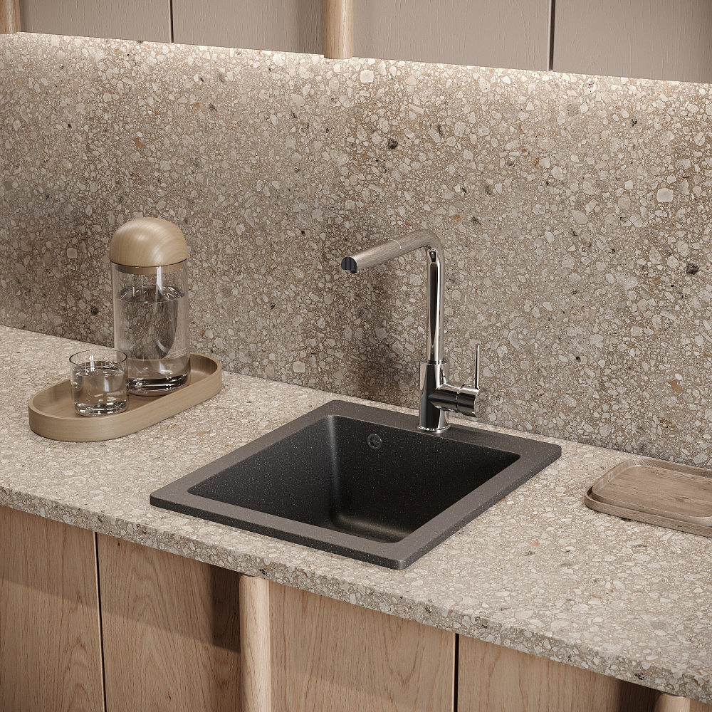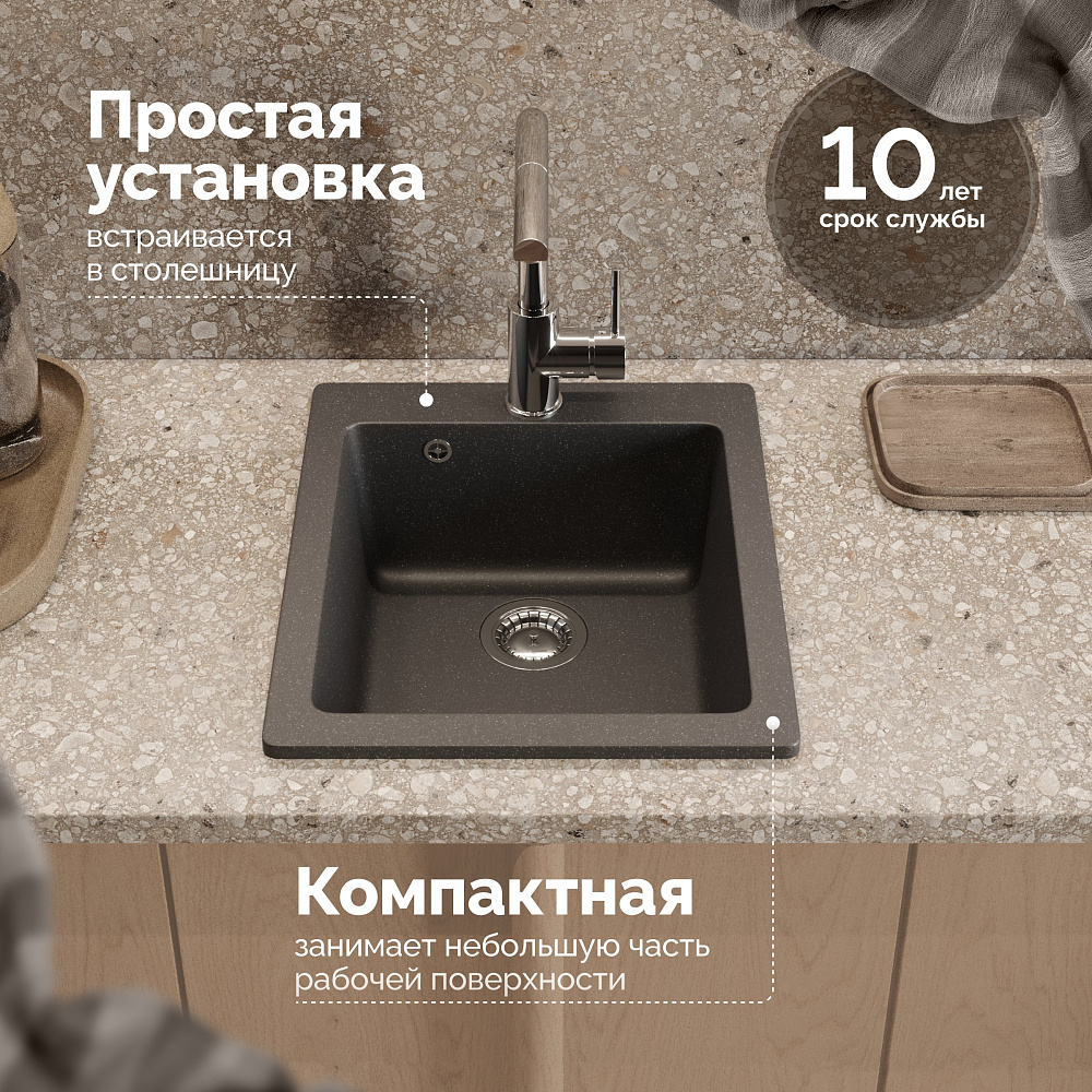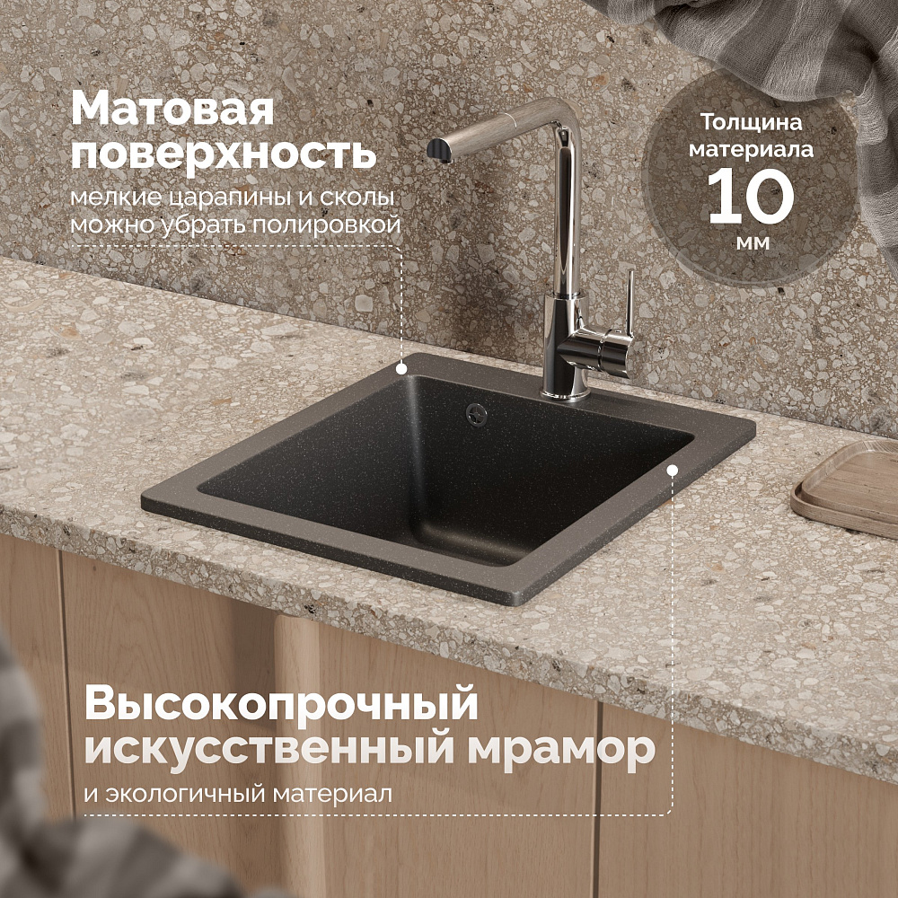 Мойка кухонная Domaci «Болонья М-08-007» антрацит — это идеальное решение для вашей кухни. Она сочетает в себе высокое качество, стильный дизайн и функциональность. Двухконтурная поверхность чаши с шероховатым дном и гладкими стенками обеспечивает противоскользящий эффект, что делает использование мойки более безопасным. Благодаря такой конструкции, вода не разбрызгивается даже при сильном напоре, что помогает поддерживать чистоту на кухне. Верхний слой гелькоут образует декоративно-защитное покрытие с антибактериальным эффектом. Это не только придаёт мойке эстетичный вид, но и обеспечивает дополнительную защиту от бактерий и микробов. Сочетание мраморной крошки и акриловых смол делает материал, из которого изготовлена мойка, в 8 раз прочнее натурального мрамора. Это гарантирует долговечность и надёжность конструкции, а также устойчивость к механическим повреждениям и царапинам. Продукция абсолютно безопасна: эмиссия вредных веществ равна 0%. Это подтверждается отсутствием характерного полихимического запаха. Вы можете быть уверены в том, что мойка не нанесёт вреда вашему здоровью и окружающей среде. Мойка кухонная Domaci «Болонья М-08-007» антрацит — это не просто функциональный элемент кухни, а стильное и качественное решение, которое подчеркнёт ваш вкус и создаст уютную атмосферу на кухне.