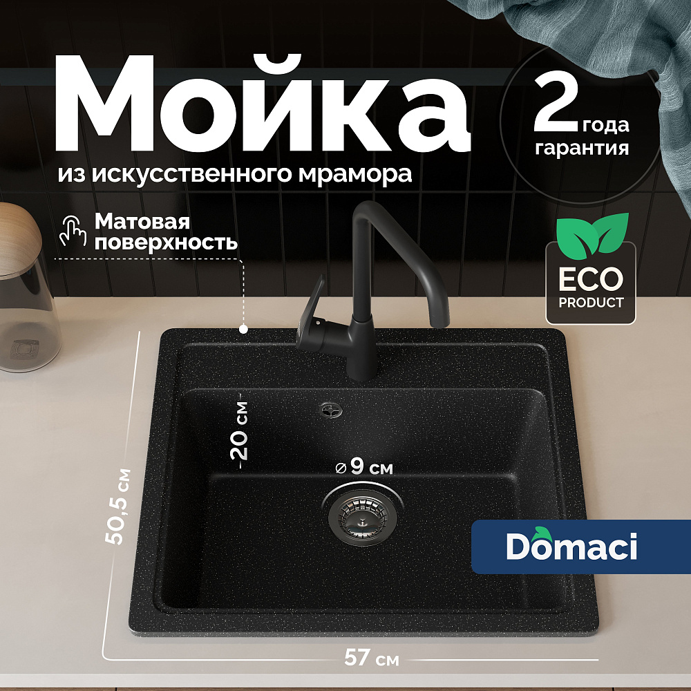 Мойка кухонная Domaci «Болонья М-09-002» — это не просто функциональный элемент вашей кухни, а настоящее произведение искусства и воплощение передовых технологий в области сантехники. Эта мойка станет изюминкой вашего интерьера и обеспечит вам комфорт и удобство в использовании. Двухконтурная поверхность чаши с шероховатым дном и гладкими стенками обеспечивает противоскользящий эффект, что делает использование мойки максимально безопасным. Вы можете быть уверены, что вода не будет разбрызгиваться даже при сильном напоре, что особенно важно при мытье посуды. Верхний слой гелькоут образует декоративно-защитное покрытие с антибактериальным эффектом. Это значит, что на поверхности мойки не будут размножаться бактерии, что обеспечит вам дополнительную защиту от микробов и сохранит чистоту вашей кухни. Сочетание мраморной крошки и акриловых смол позволяет сделать материал в 8 раз прочнее натурального мрамора. Это гарантирует долговечность и надёжность мойки, а также устойчивость к механическим повреждениям и царапинам. Продукция абсолютно безопасна — эмиссия вредных веществ составляет 0%. Это подтверждается отсутствием характерного полихимического запаха, что делает мойку безопасной для использования в домашних условиях. Мойка кухонная Domaci «Болонья М-09-002» — это сочетание элегантного дизайна, передовых технологий и высокого качества. Она станет незаменимым помощником на вашей кухне и подарит вам удовольствие от использования.