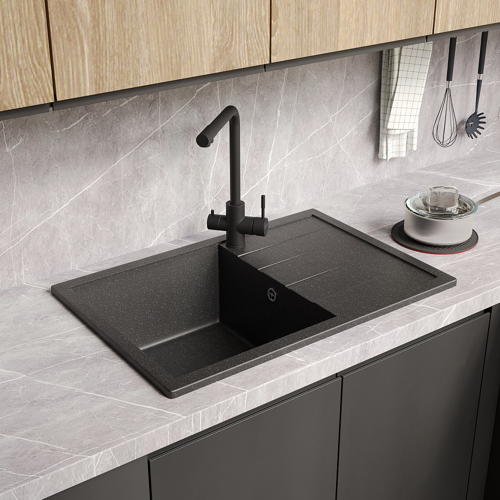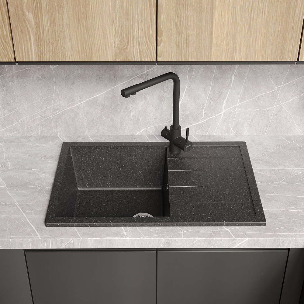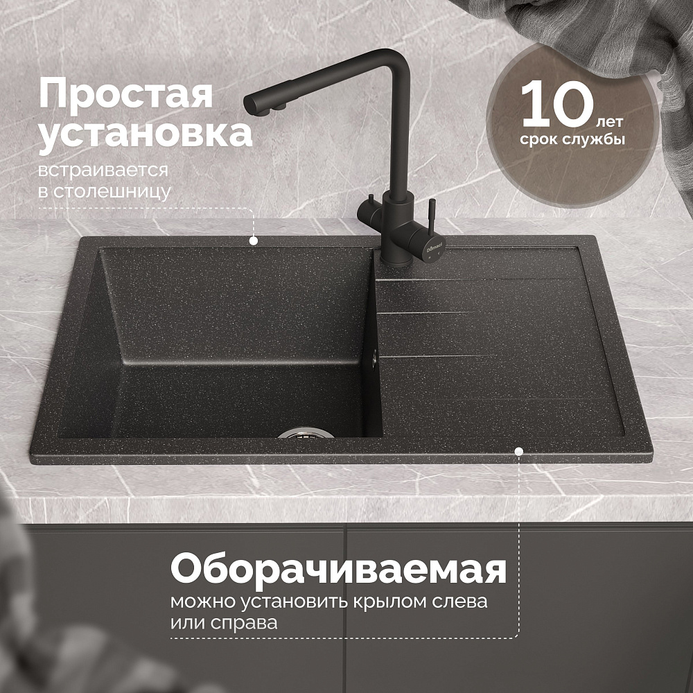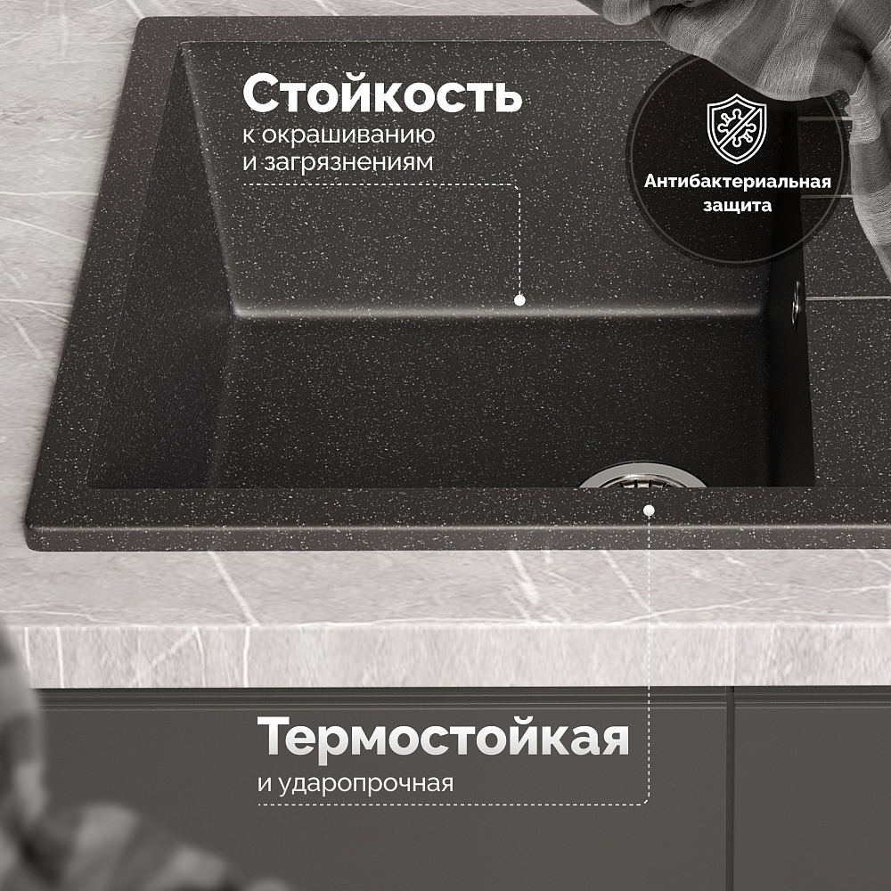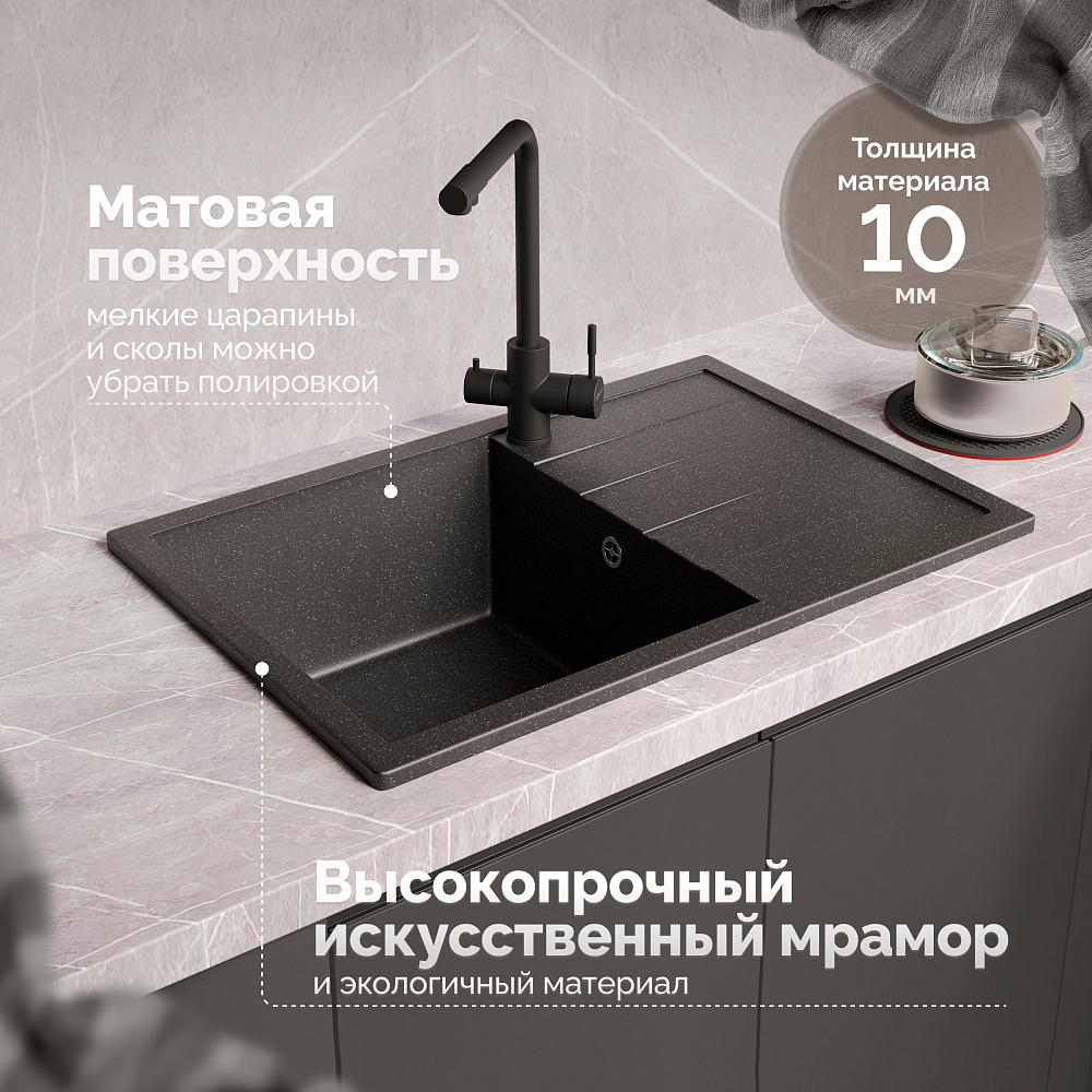 Мойка кухонная Domaci «Болонья М-161-002» — это не просто элемент сантехники, а настоящее воплощение стиля, комфорта и безопасности на вашей кухне. Эта модель сочетает в себе передовые технологии и высококачественные материалы, чтобы обеспечить вам максимальное удовольствие от использования. Двухконтурная поверхность чаши с шероховатым дном и гладкими стенками — это не просто дизайнерское решение, а продуманная конструкция, которая обеспечивает противоскользящий эффект. Вы можете быть уверены, что посуда не выскользнет из рук при мытье, а разбрызгивание воды даже при сильном напоре будет минимальным. Это особенно важно для тех, кто ценит порядок и чистоту на своей кухне. Верхний слой гелькоут образует декоративно-защитное покрытие с антибактериальным эффектом. Это означает, что поверхность мойки легко очищается от загрязнений и микроорганизмов, что делает её идеальной для использования на кухне. Вы можете быть уверены в гигиеничности и безопасности вашей мойки. Сочетание мраморной крошки и акриловых смол позволяет сделать материал в 8 раз прочнее натурального мрамора. Это означает, что мойка устойчива к царапинам, сколам и другим повреждениям, что гарантирует её долговечность и сохранение первоначального внешнего вида на протяжении многих лет. Продукция абсолютно безопасна, эмиссия вредных веществ составляет 0%. Это подтверждается отсутствием характерного полихимического запаха, что делает мойку Domaci «Болонья М-161-002» идеальным выбором для тех, кто заботится о своём здоровье и окружающей среде. Выбирая мойку кухонную Domaci «Болонья М-161-002», вы получаете не просто функциональный элемент сантехники, а стильное и надёжное решение для вашей кухни, которое будет радовать вас своим качеством и комфортом на протяжении многих лет.