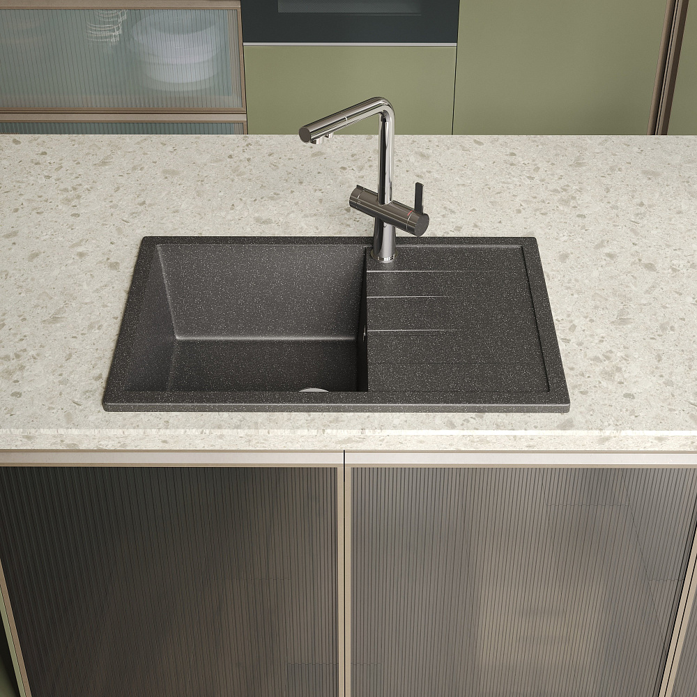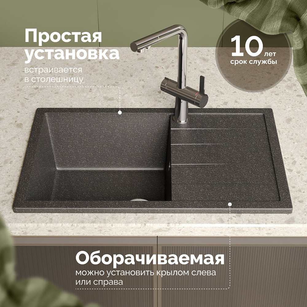 Мойка кухонная Domaci «Болонья М-161-007» антрацит — это идеальное решение для вашей кухни. Она сочетает в себе высокое качество, стильный дизайн и функциональность. Двухконтурная поверхность чаши с шероховатым дном и гладкими стенками обеспечивает противоскользящий эффект, что делает использование мойки более безопасным. Это особенно важно при мытье посуды или продуктов. Кроме того, такая поверхность исключает разбрызгивание воды даже при сильном напоре, что помогает поддерживать чистоту на кухне. Верхний слой гелькоут образует декоративно-защитное покрытие с антибактериальным эффектом. Это не только придаёт мойке эстетичный вид, но и обеспечивает дополнительную защиту от микробов и бактерий. Сочетание мраморной крошки и акриловых смол позволяет сделать материал в 8 раз прочнее натурального мрамора. Это гарантирует долговечность и надёжность мойки, а также устойчивость к механическим повреждениям и царапинам. Продукция абсолютно безопасна, эмиссия вредных веществ равна 0%. Отсутствие характерного полихимического запаха подтверждает безопасность мойки для здоровья. Вы можете быть уверены в качестве и надёжности этого продукта. Мойка кухонная Domaci «Болонья М-161-007» антрацит станет прекрасным дополнением к вашей кухне. Её стильный дизайн и функциональность сделают процесс приготовления пищи и мытья посуды более комфортным и приятным.