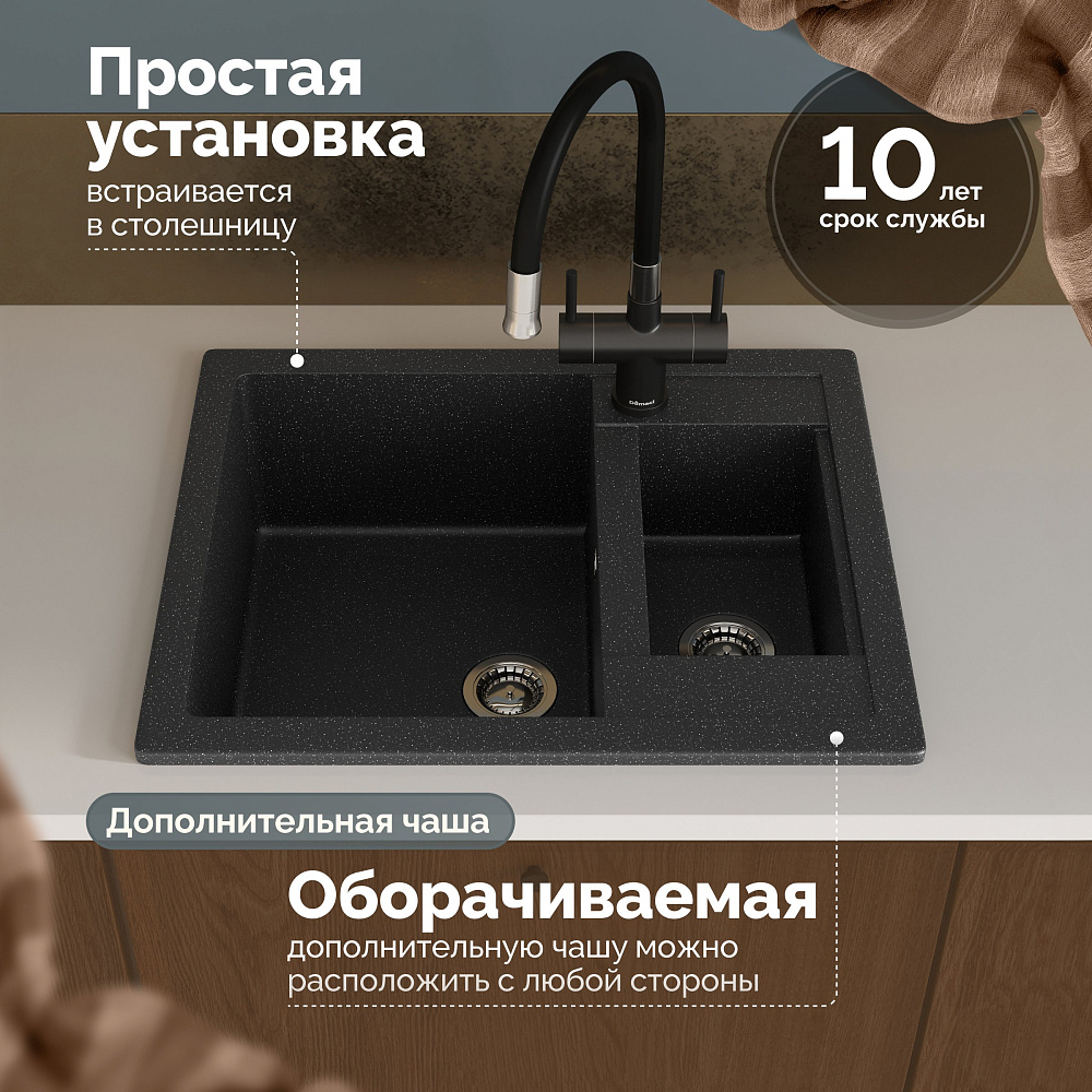 Мойка кухонная Domaci «Болонья М-19-002» — это не просто функциональный элемент вашей кухни, а настоящее произведение искусства и воплощение передовых технологий в области сантехники. Эта мойка станет изюминкой вашего интерьера и обеспечит вам комфорт и удобство в использовании. Двухконтурная поверхность чаши с шероховатым дном и гладкими стенками обеспечивает противоскользящий эффект, что делает использование мойки максимально безопасным. Вы можете быть уверены, что вода не будет разбрызгиваться даже при сильном напоре, что особенно важно при мытье посуды. Верхний слой гелькоут образует декоративно-защитное покрытие с антибактериальным эффектом. Это не только придаёт мойке эстетичный вид, но и обеспечивает дополнительную защиту от бактерий и микроорганизмов, что особенно актуально на кухне. Сочетание мраморной крошки и акриловых смол позволяет сделать материал в 8 раз прочнее натурального мрамора. Это гарантирует долговечность и надёжность мойки, а также устойчивость к механическим повреждениям и царапинам. Продукция абсолютно безопасна — эмиссия вредных веществ равна 0%. Это подтверждается отсутствием характерного полихимического запаха, что делает мойку безопасной для использования в домашних условиях. Мойка кухонная Domaci «Болонья М-19-002» — это сочетание стиля, комфорта и безопасности. Она станет незаменимым помощником на вашей кухне и подарит вам удовольствие от каждого использования.