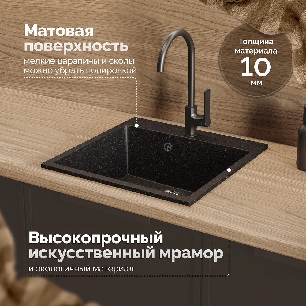 Мойка кухонная Domaci «Болонья М-42-002» — это не просто функциональный элемент вашей кухни, а настоящее произведение искусства и образец надёжности. Двухконтурная поверхность чаши с шероховатым дном и гладкими стенками обеспечивает противоскользящий эффект, что делает использование мойки максимально комфортным и безопасным. Благодаря такой конструкции, вода стекает равномерно, исключая разбрызгивание даже при сильном напоре. Верхний слой мойки выполнен из гелькоута — материала, который образует декоративно-защитное покрытие с антибактериальным эффектом. Это гарантирует долговечность и гигиеничность изделия, а также придаёт ему стильный и современный вид. Сочетание мраморной крошки и акриловых смол, используемых в производстве мойки, делает материал в 8 раз прочнее натурального мрамора. Это обеспечивает высокую устойчивость к механическим повреждениям, царапинам и сколам, сохраняя первоначальный вид мойки на долгие годы. Продукция Domaci абсолютно безопасна для здоровья. Эмиссия вредных веществ равна 0%, что подтверждается отсутствием характерного полихимического запаха. Вы можете быть уверены в качестве и безопасности мойки, используя её в повседневной жизни. Мойка кухонная Domaci «Болонья М-42-002» станет прекрасным дополнением к вашей кухне, сочетая в себе функциональность, эстетику и надёжность.