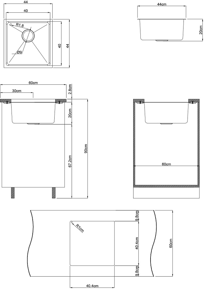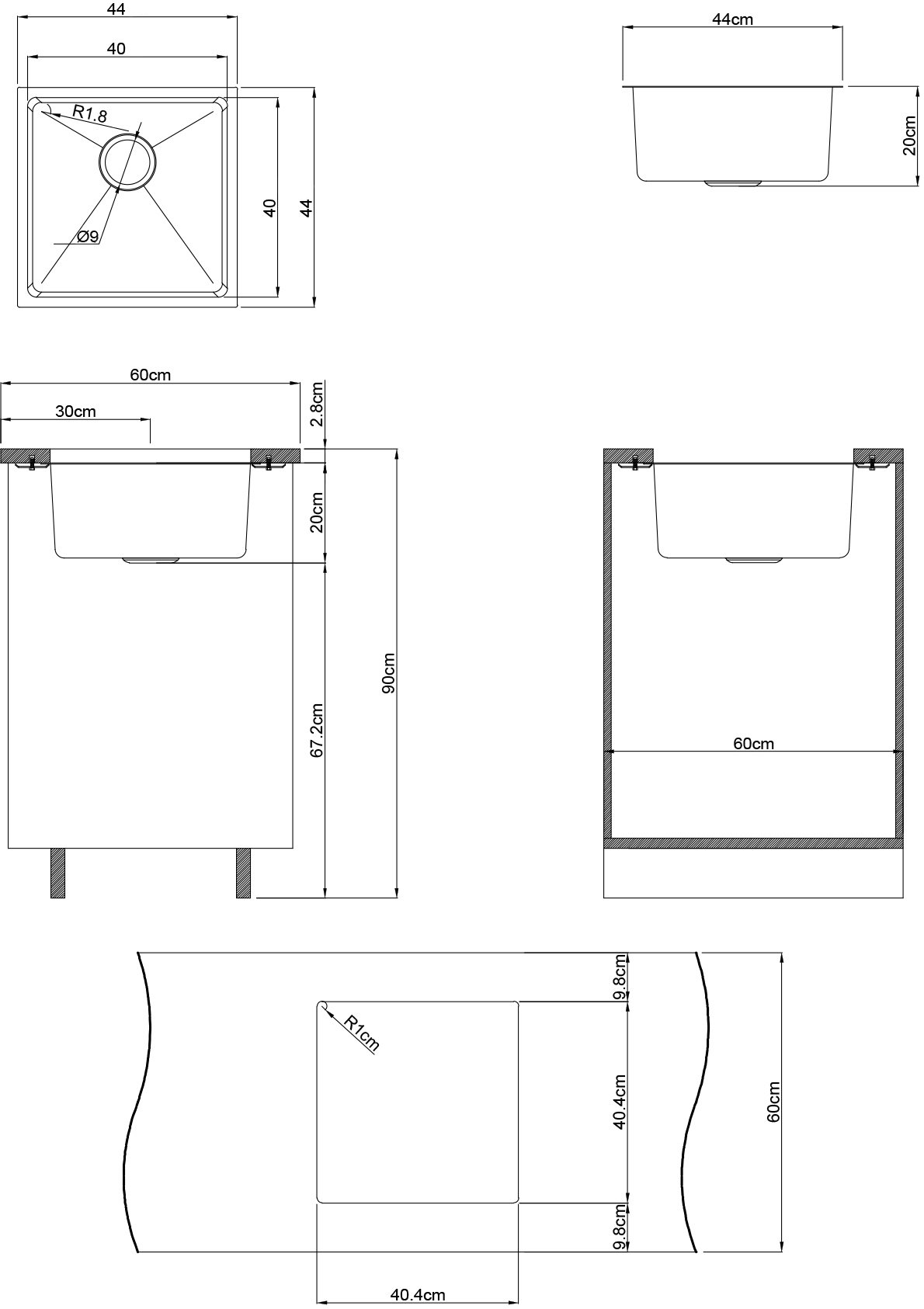 Мойка кухонная Domaci Равенна DMC-RV44061S 44x44 см, с сифоном, сталь, сатин