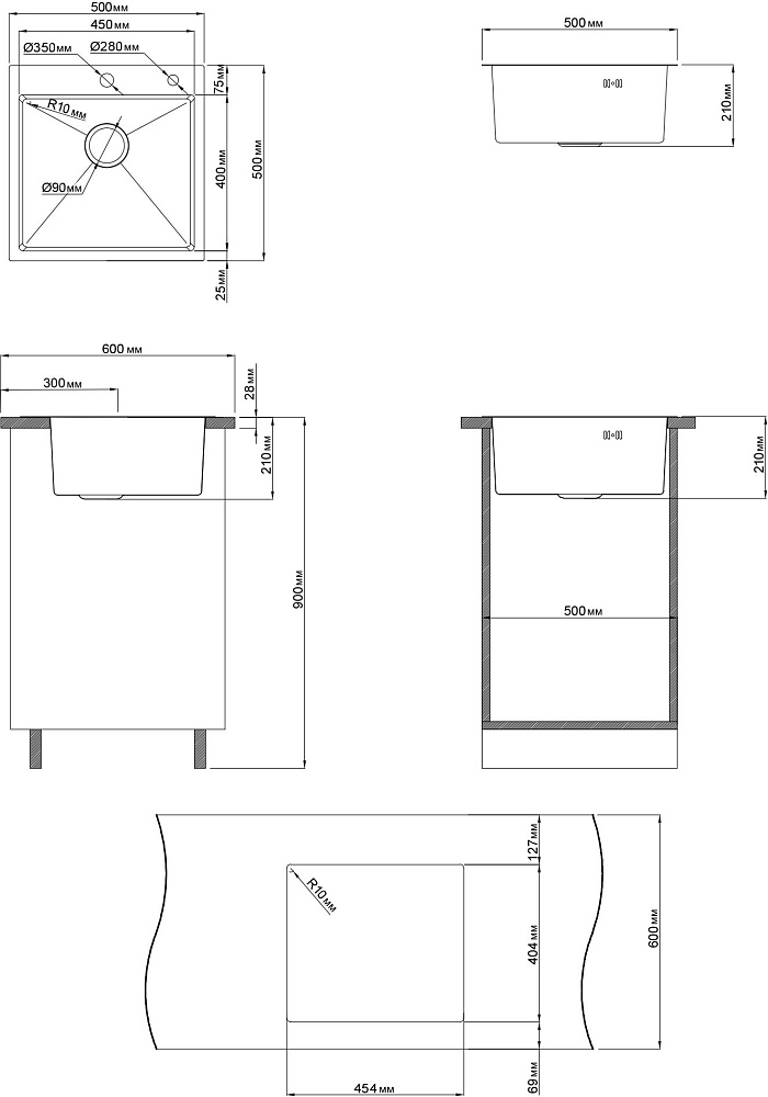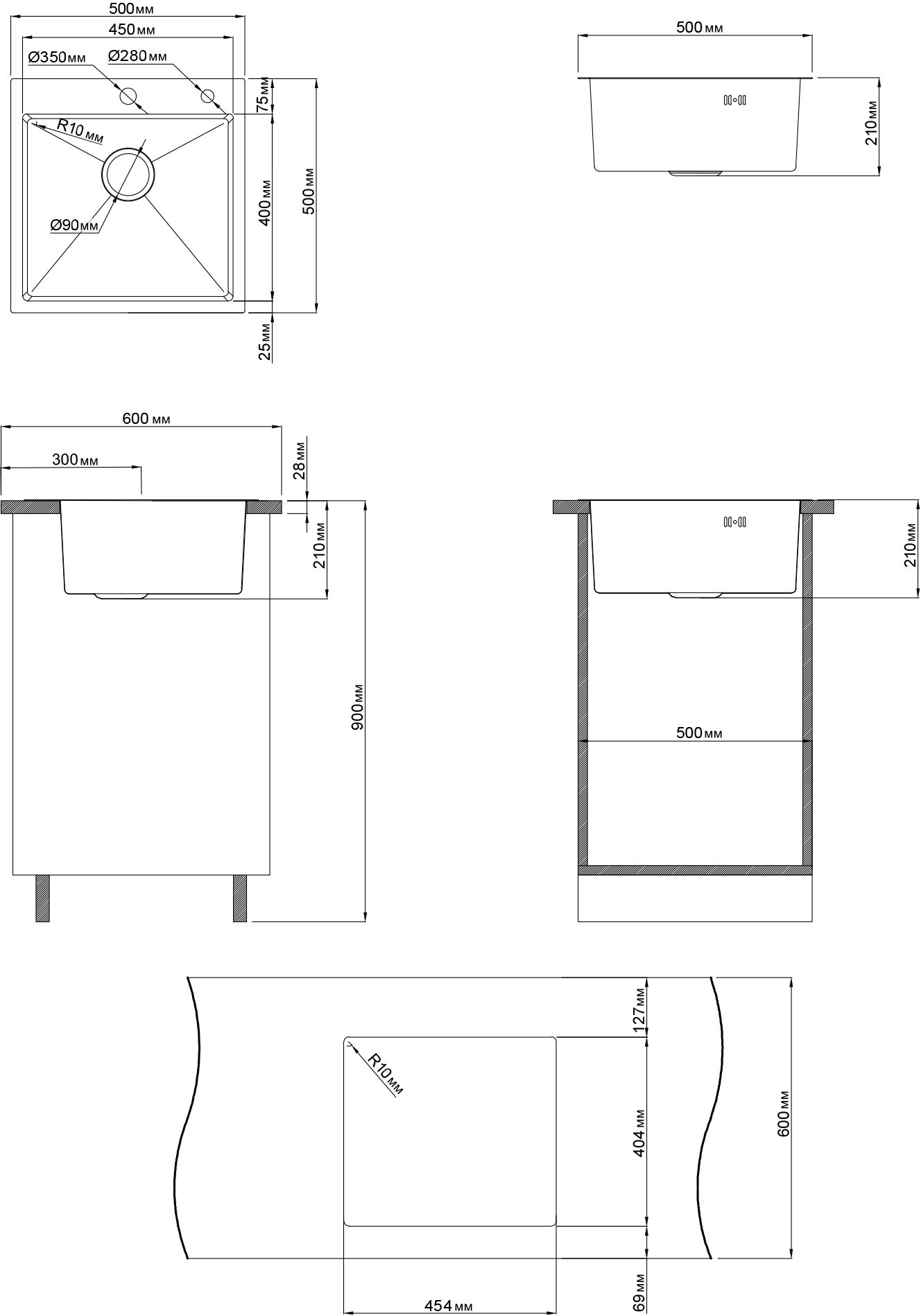 Мойка кухонная Domaci Равенна DMC-RV50202GB 50x50 см, с дозатором и сифоном, вороненая сталь