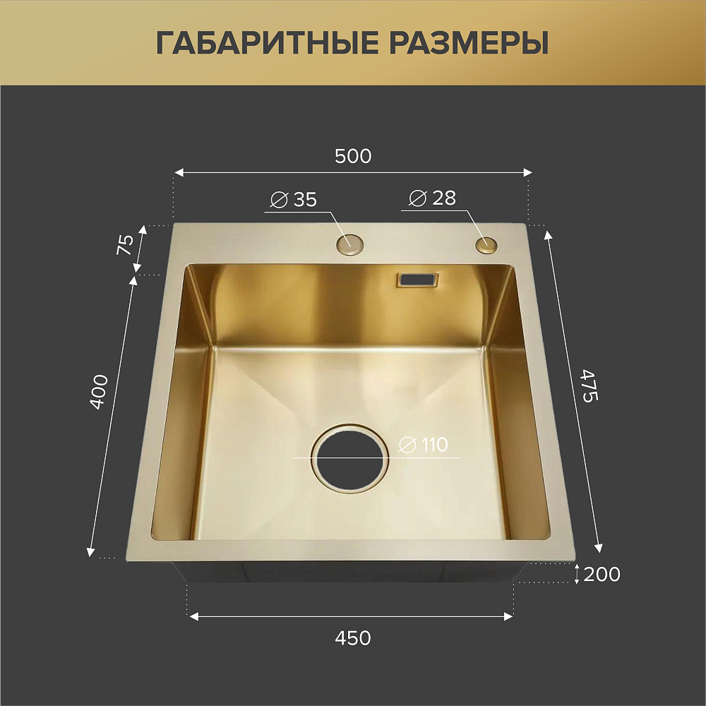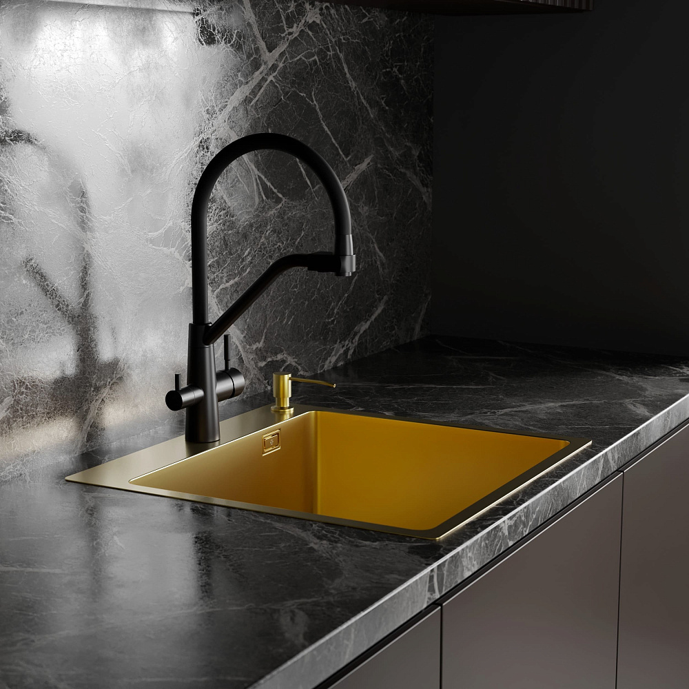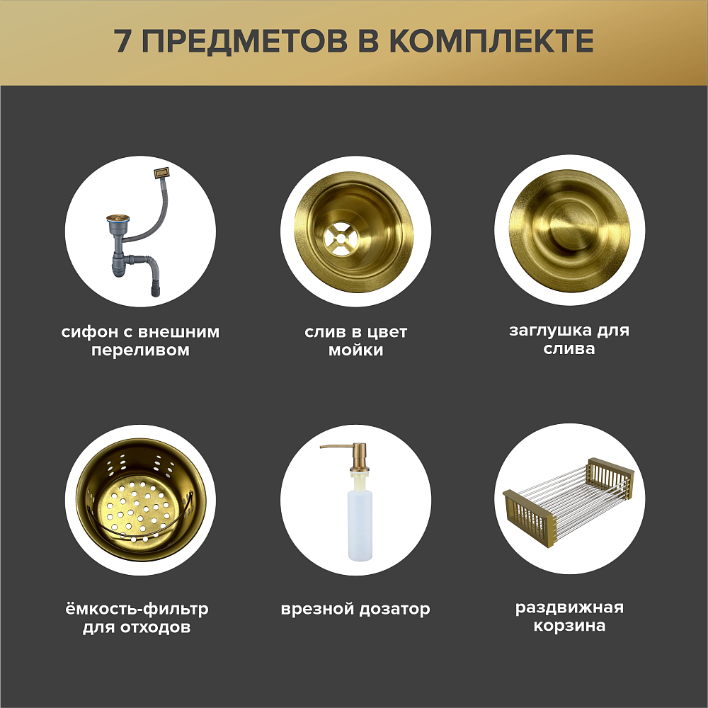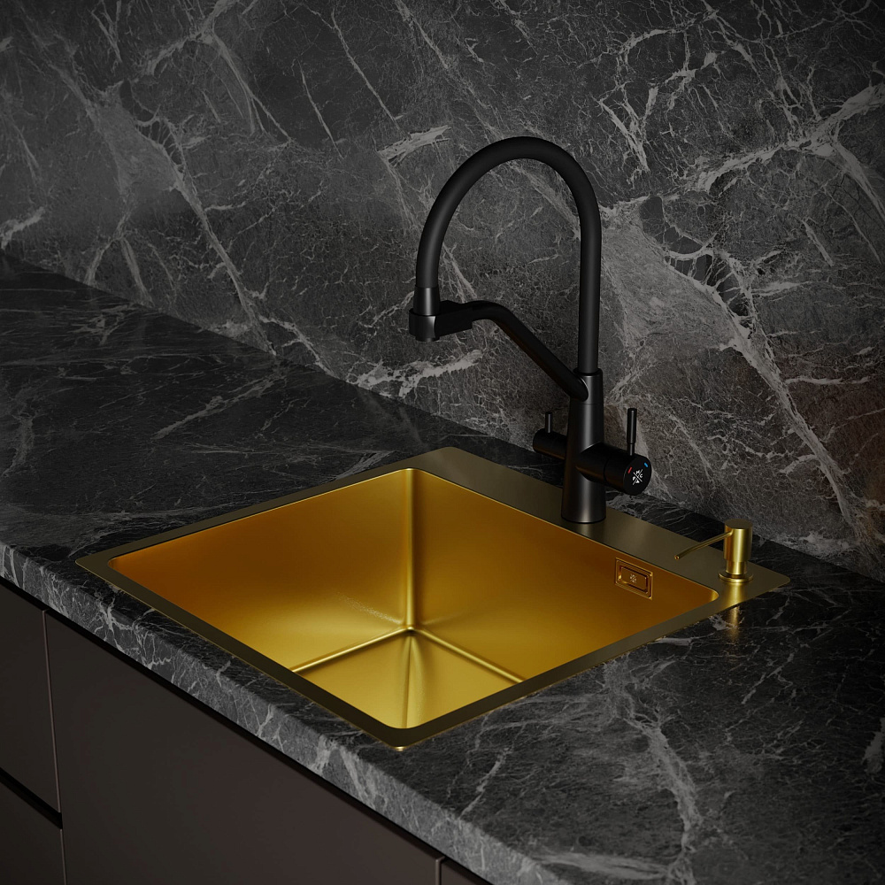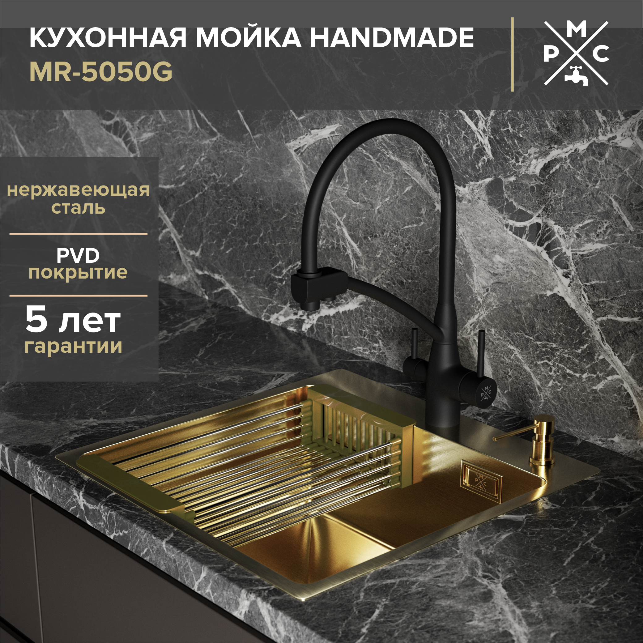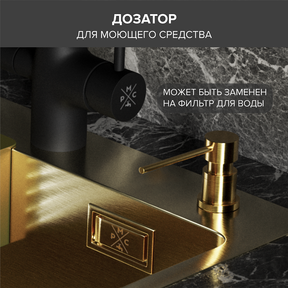 Мойка кухонная РМС MR-5050G c корзиной и дозатором, золото