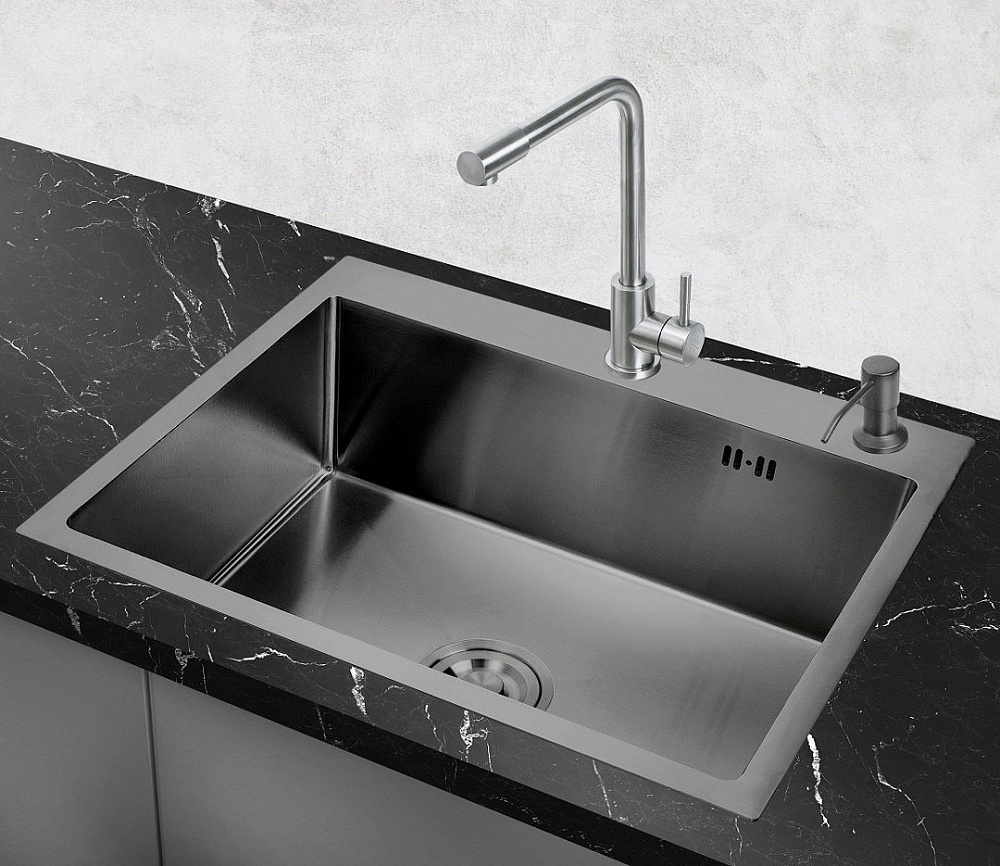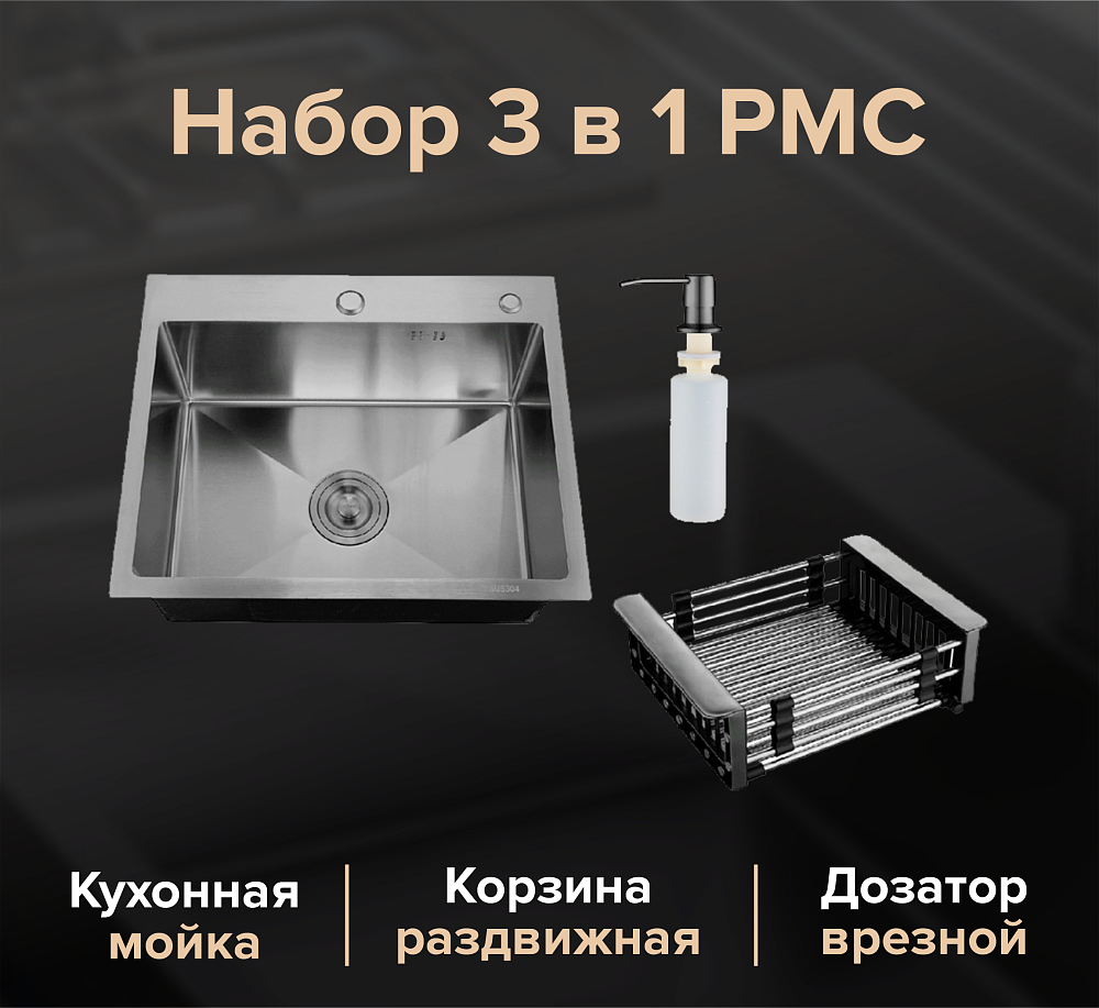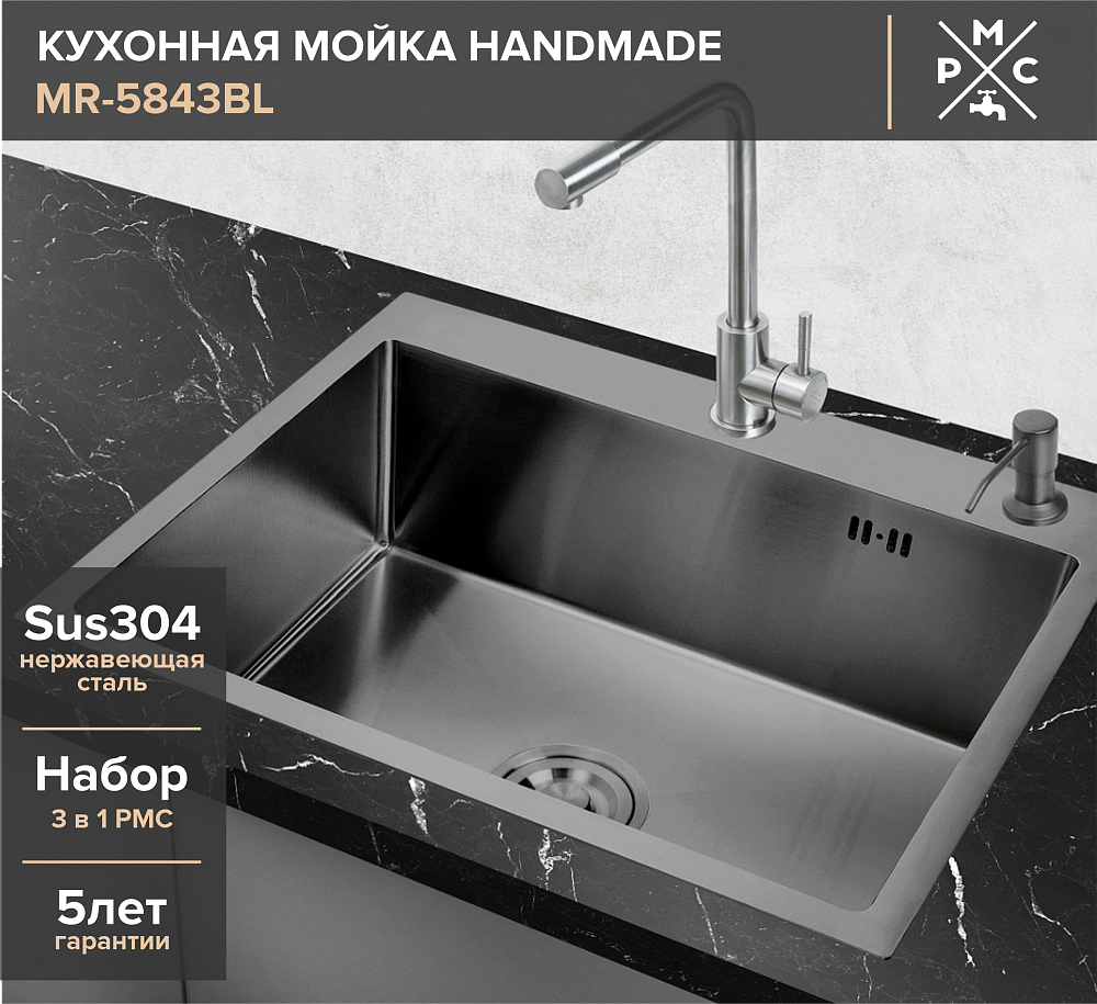 Мойка кухонная РМС MR-5843BL c корзиной и дозатором, графит