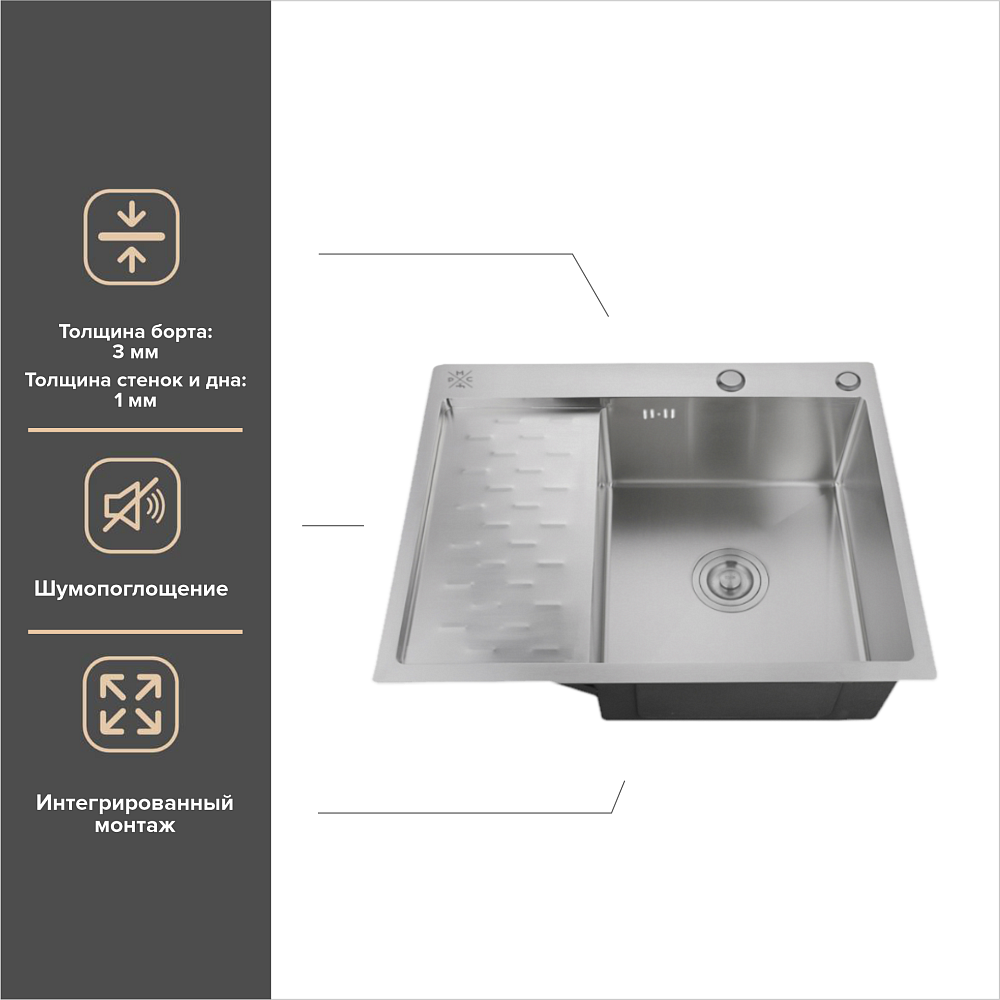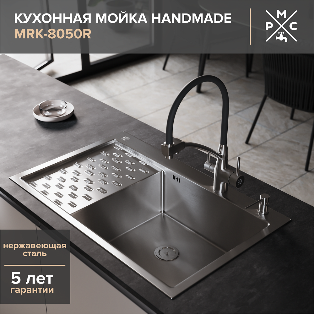 Мойка кухонная РМС MRK-8050R c дозатором, изготовленная из высококачественной нержавеющей стали, — это идеальное решение для вашей кухни. Толщина материала составляет от 1 до 3 мм, что обеспечивает прочность и долговечность мойки. Эта мойка не только функциональна, но и эстетически привлекательна. Её стильный дизайн гармонично впишется в любой интерьер, придавая вашей кухне современный и элегантный вид. Одним из ключевых преимуществ этой модели является наличие дозатора. Он позволяет экономить моющие средства и делает процесс мытья посуды более удобным и гигиеничным. Нержавеющая сталь, из которой изготовлена мойка, обладает высокой устойчивостью к коррозии, царапинам и другим повреждениям. Это гарантирует, что мойка сохранит свой первоначальный вид на протяжении многих лет. Кроме того, мойка РМС MRK-8050R легко устанавливается и подключается к системе водоснабжения. Она имеет оптимальные размеры и форму, которые обеспечивают удобство использования и комфорт при работе на кухне. Выбирая мойку РМС MRK-8050R, вы получаете надёжного и долговечного помощника на вашей кухне. Она станет незаменимым атрибутом вашего дома и будет радовать вас своим качеством и стильным дизайном на протяжении многих лет.