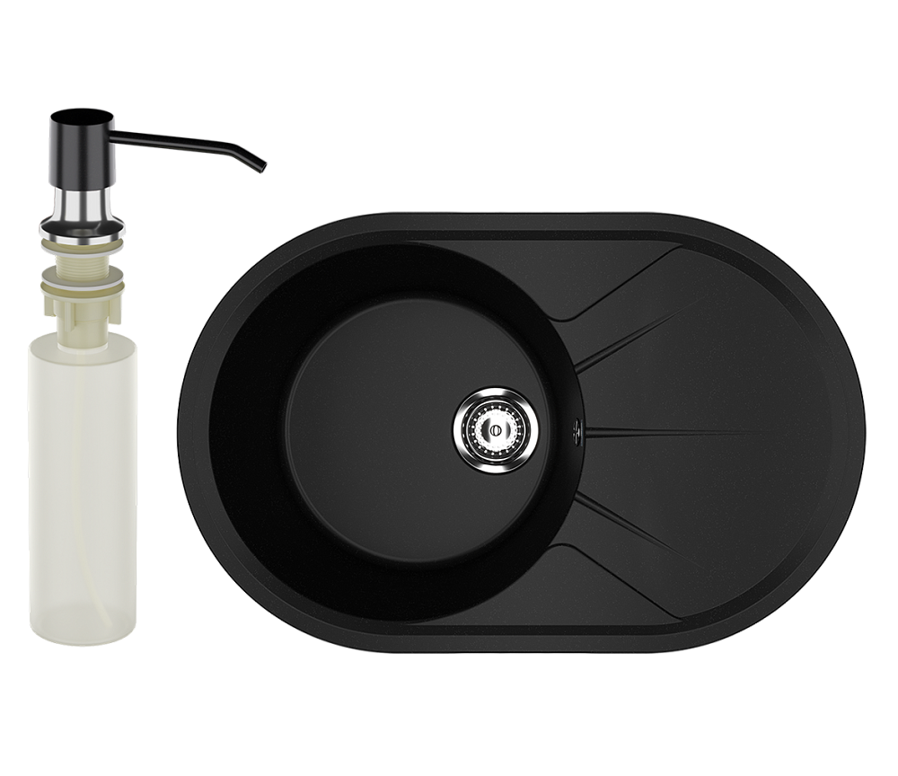 Мойка кухонная Ulgran U-503 344 ультра-черная + дозатор U-01 ультра-черный
