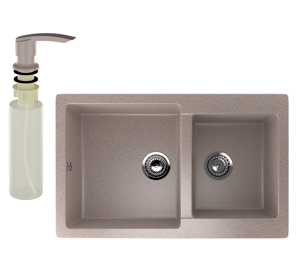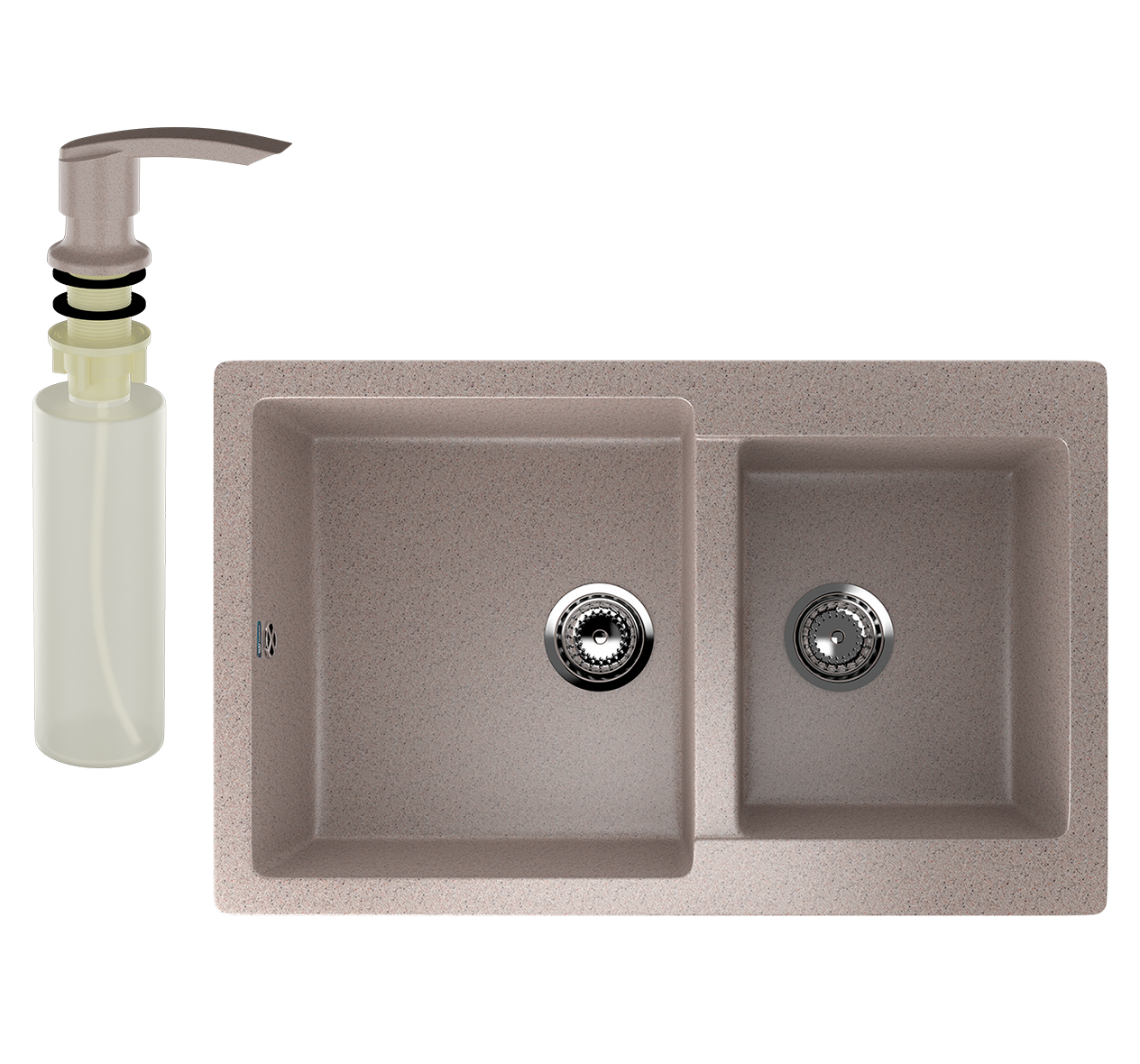 Мойка кухонная Ulgran U-505 302 песочная + дозатор U-02 песочный