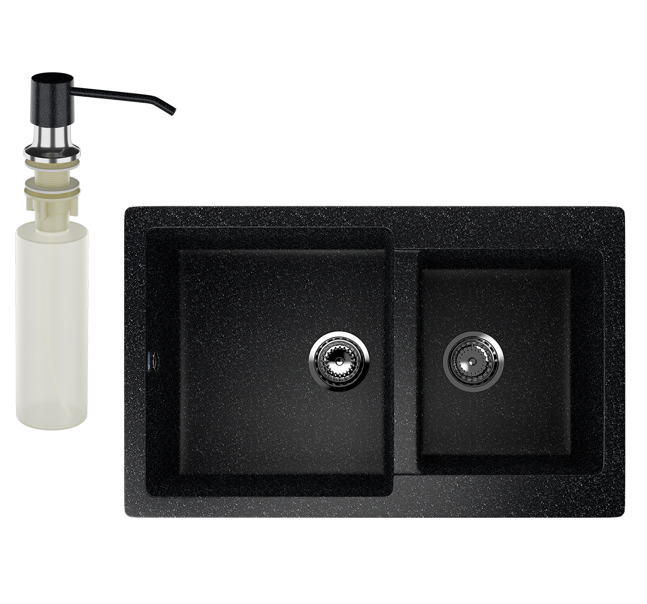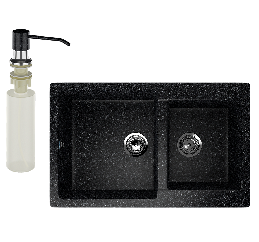Мойка кухонная Ulgran U-505 308 черная + дозатор U-01 черный