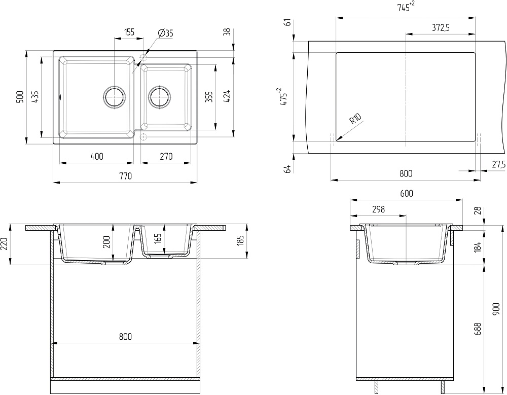 Отзывы о Мойка кухонная Ulgran U-505 308 черная + дозатор U-01 черный