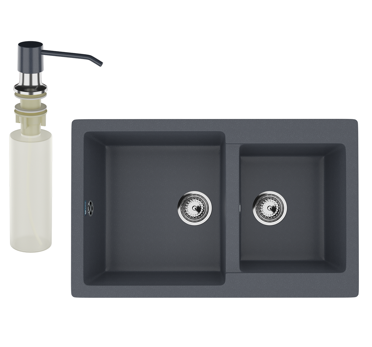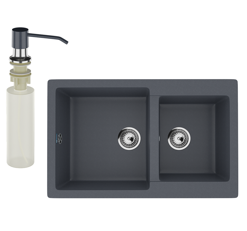 Мойка кухонная Ulgran U-505 343 антрацит + дозатор U-01 антрацит