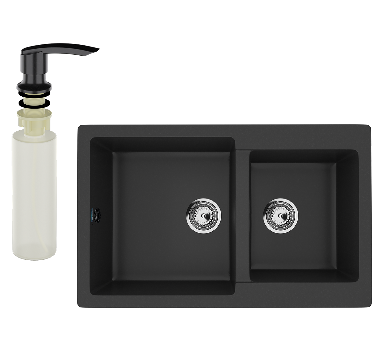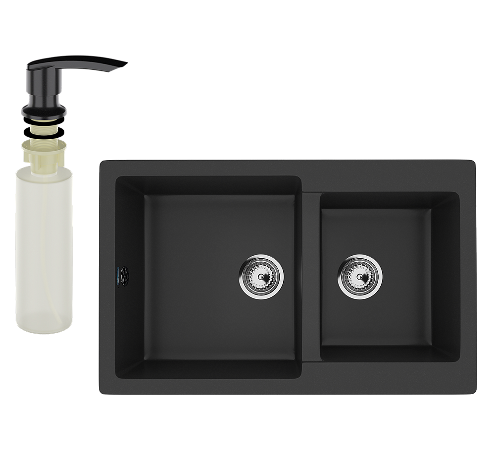 Мойка кухонная Ulgran U-505 344 ультра-черная + дозатор U-02 ультра-черный