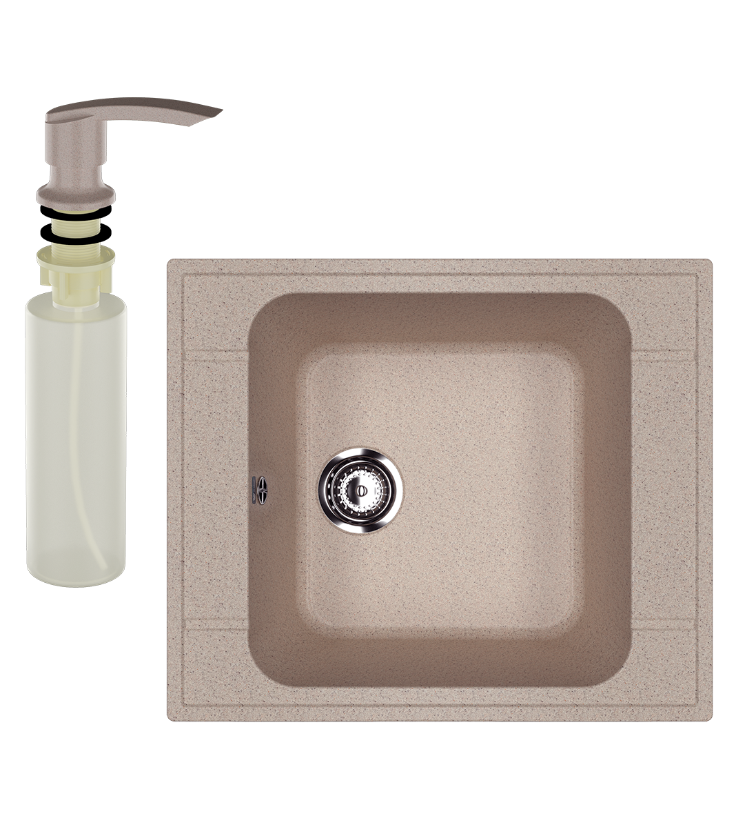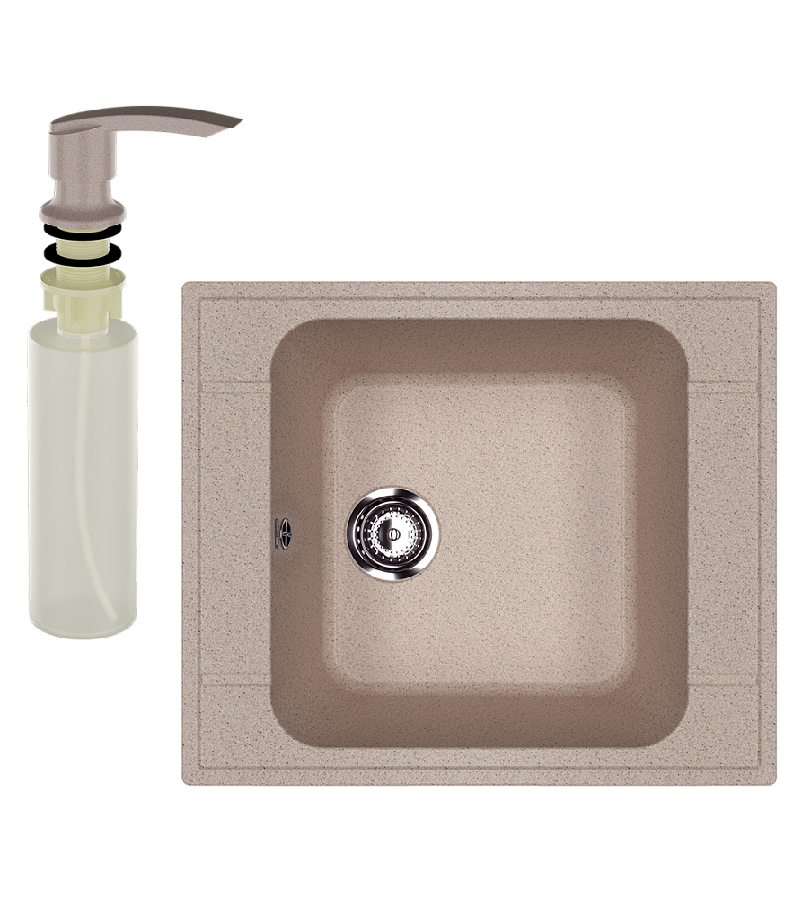 Мойка кухонная Ulgran U-604 302 песочная + дозатор U-02 песочный