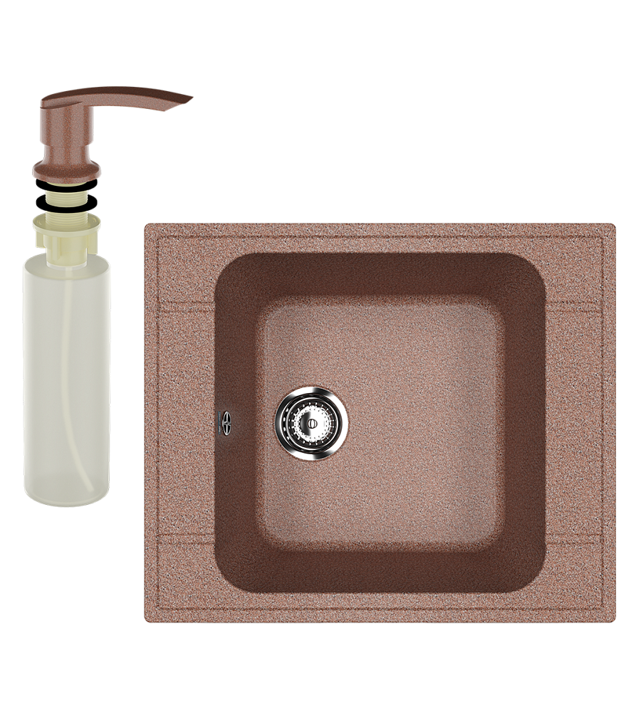 Мойка кухонная Ulgran U-604 307 терракот + дозатор U-02 терракот