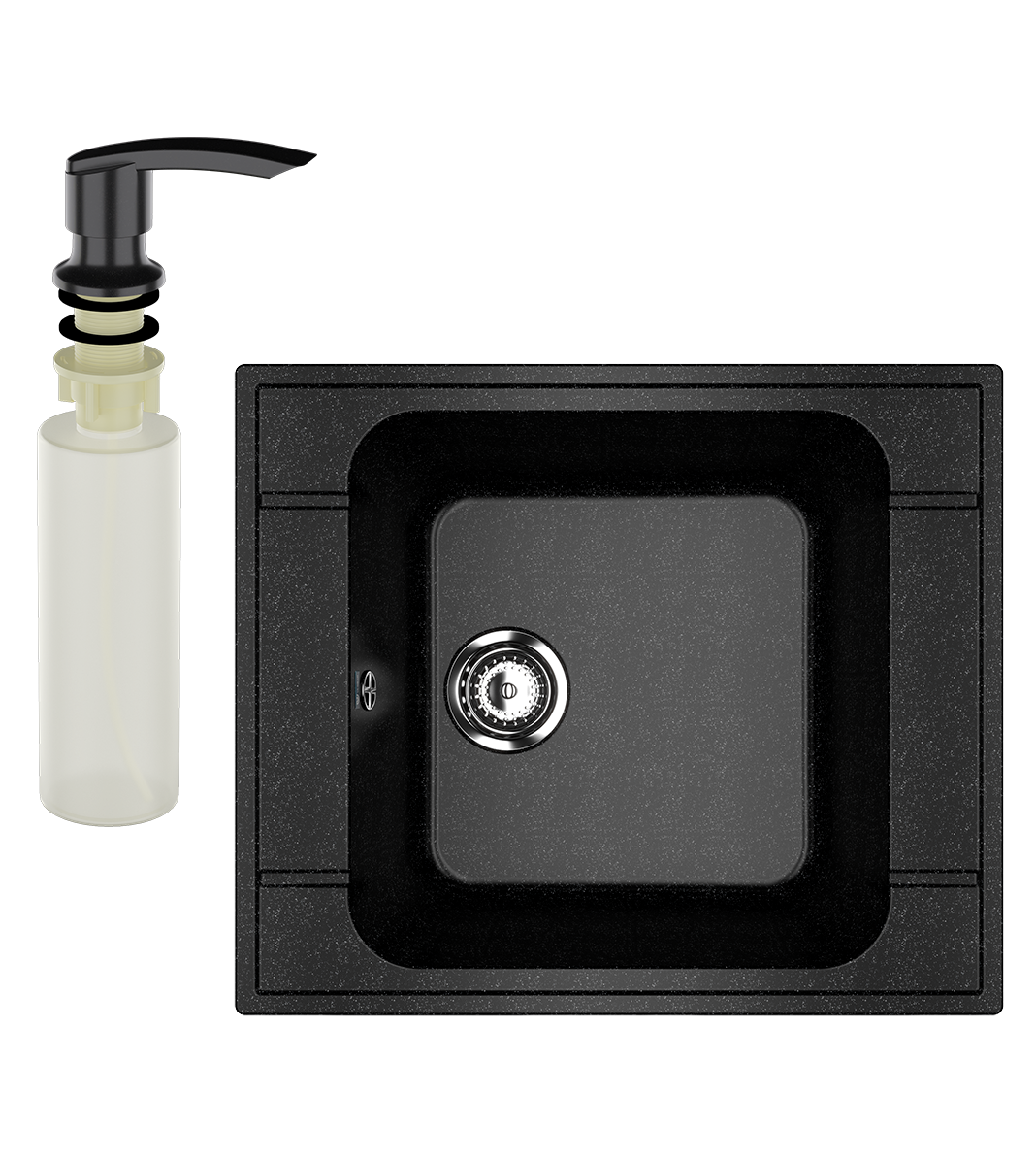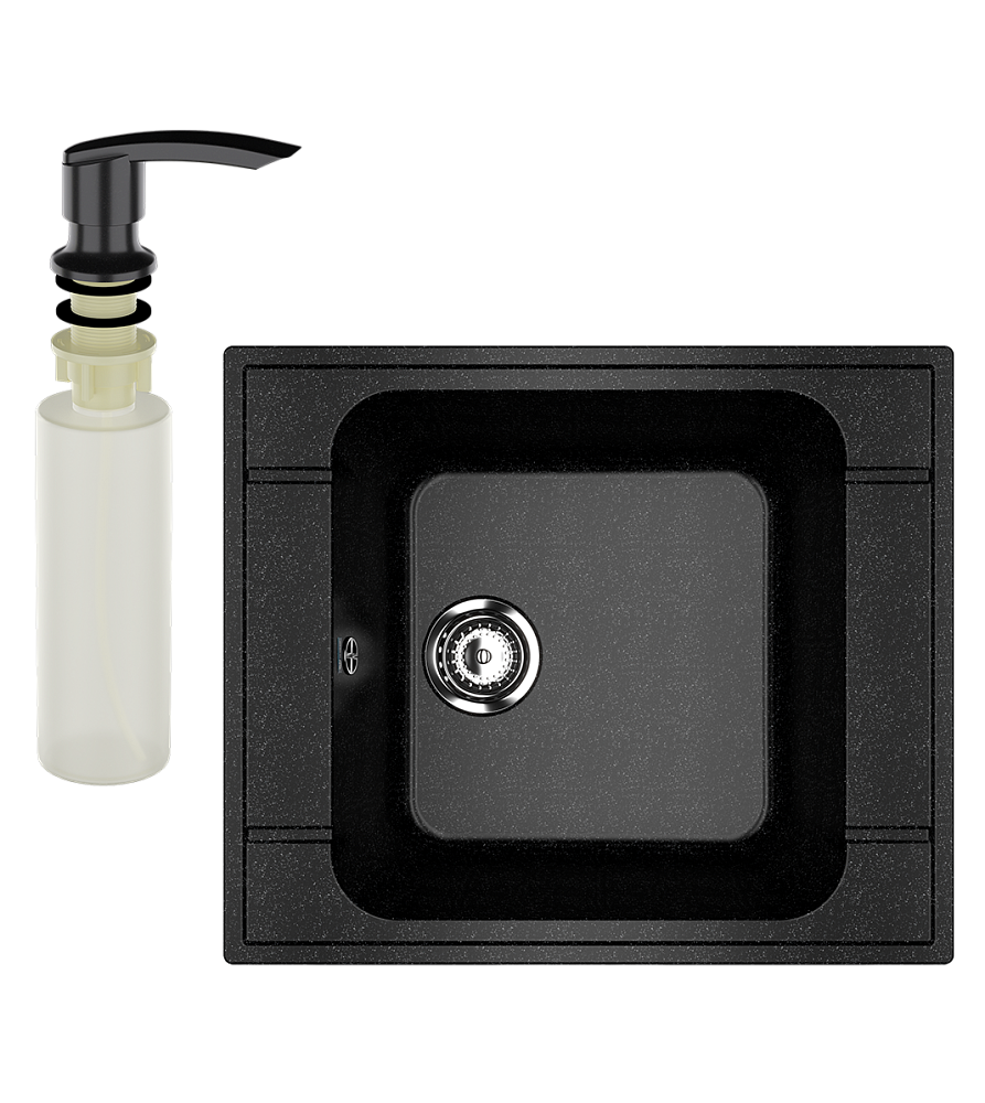 Мойка кухонная Ulgran U-604 308 черная + дозатор U-02 ультра-черный