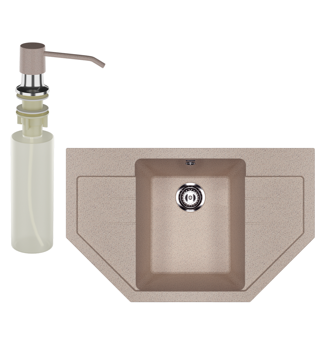 Мойка кухонная Ulgran U-609 302 песочная + дозатор U-01 песочный