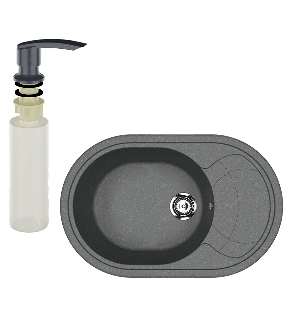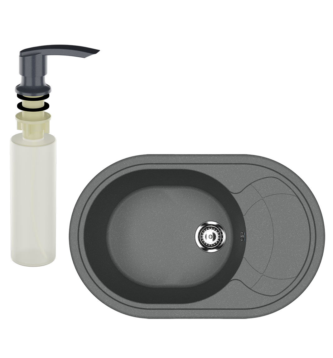 Мойка кухонная Ulgran U-610 343 антрацит + дозатор U-02 антрацит