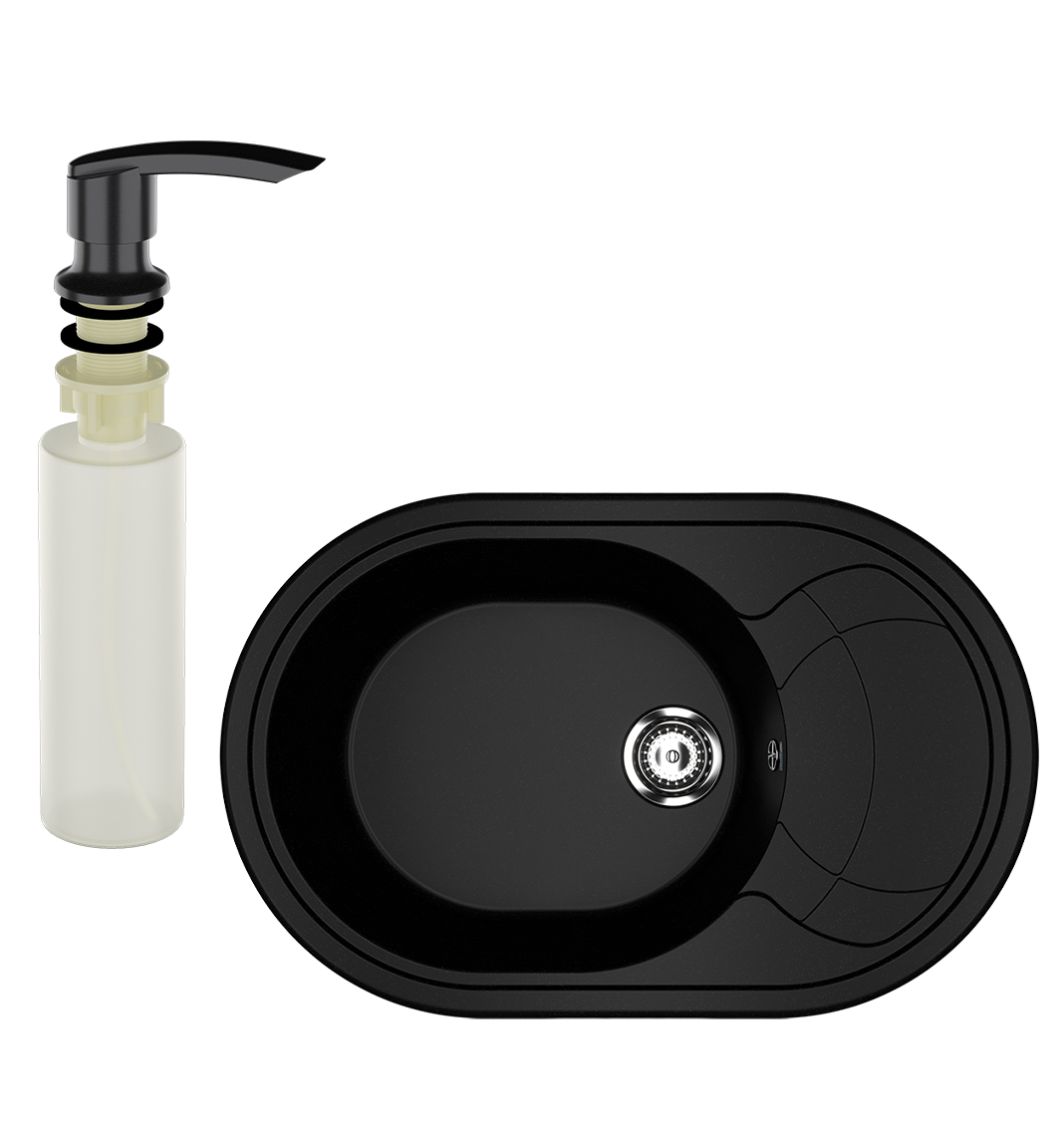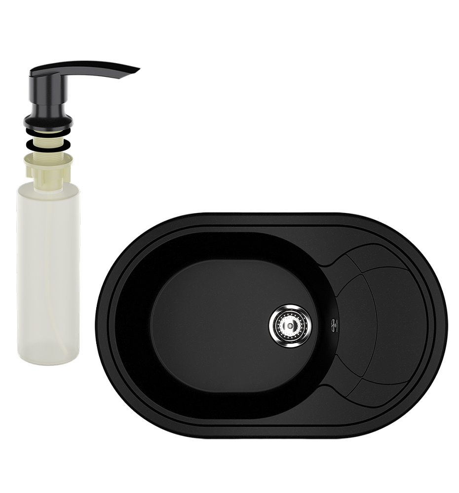 Мойка кухонная Ulgran U-610 344 ультра-черная + дозатор U-02 ультра-черный