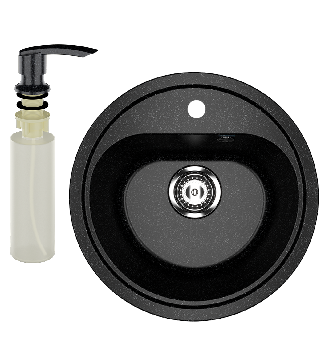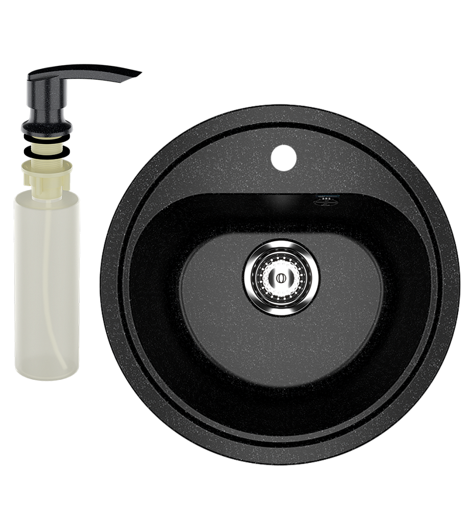 Мойка кухонная Ulgran U-700 308 черная + дозатор U-02 черный