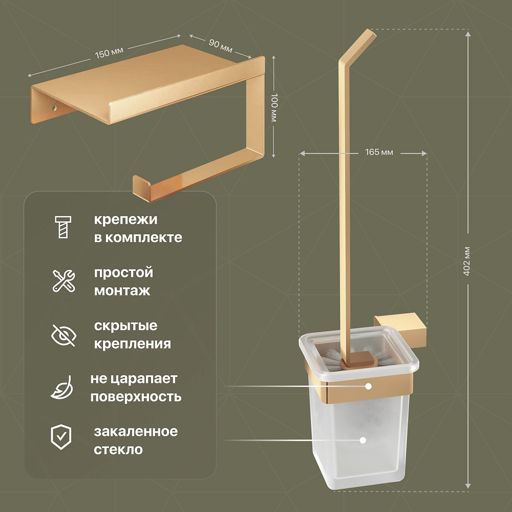 Набор Ершик DEKOR BANYO SS 304 Gold SS304 6009 02 + Держатель SS304 6023 04 02