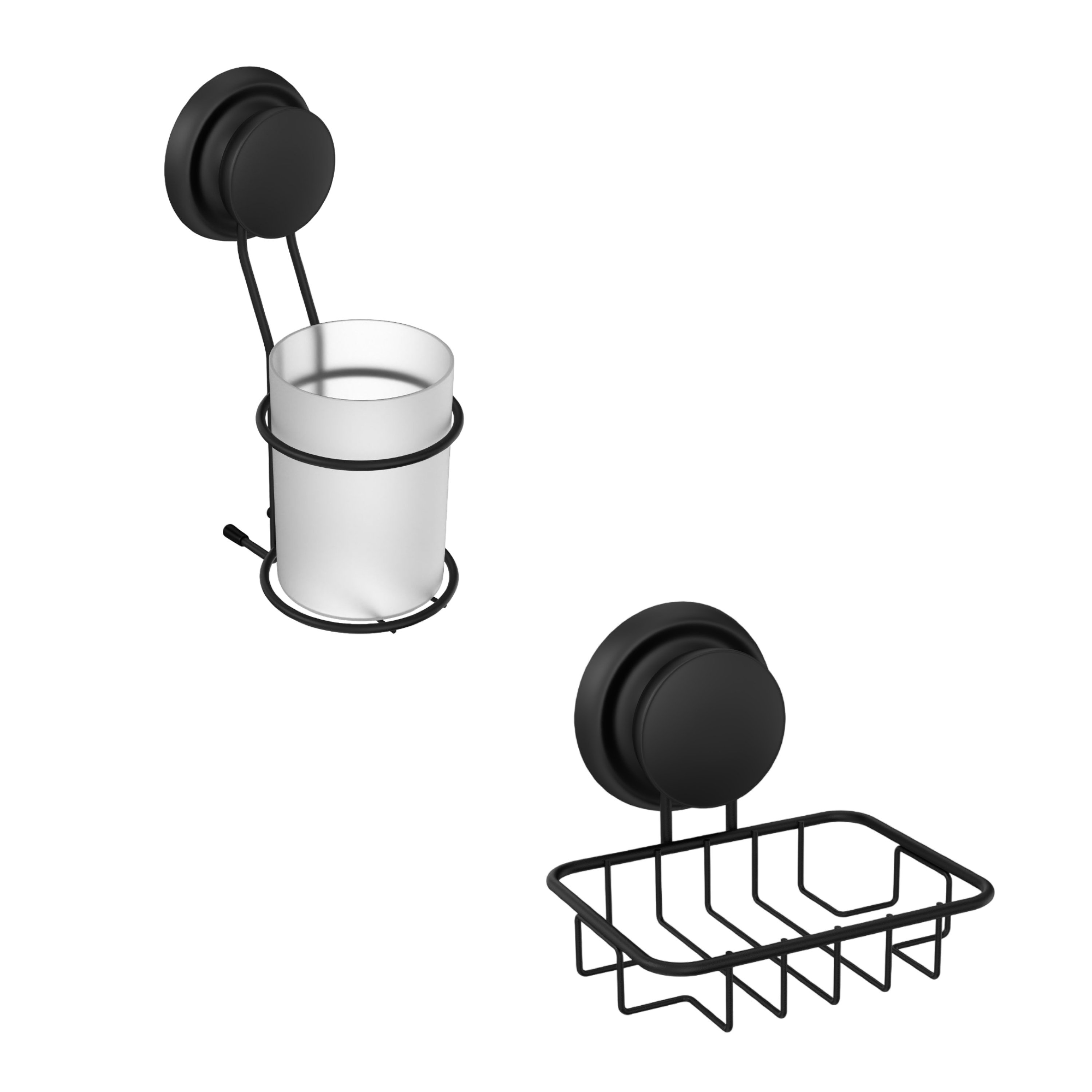 Набор Стакан Fora Grafit + Мыльница FOR-GRA034 настенная, на присосках, черная