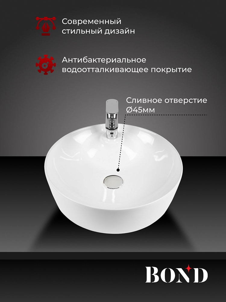Накладная раковина BOND Круг S03-430 44 белая, круглая, с 1 отверстием под смеситель