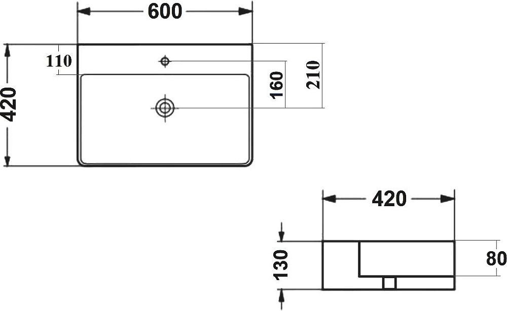 Накладная раковина BOND Куб S02-600 60 белая, прямоугольная