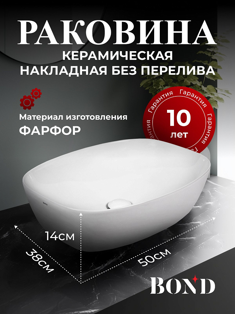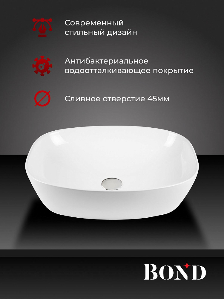 Накладная раковина BOND Куб S56-500 50 белая, прямоугольная