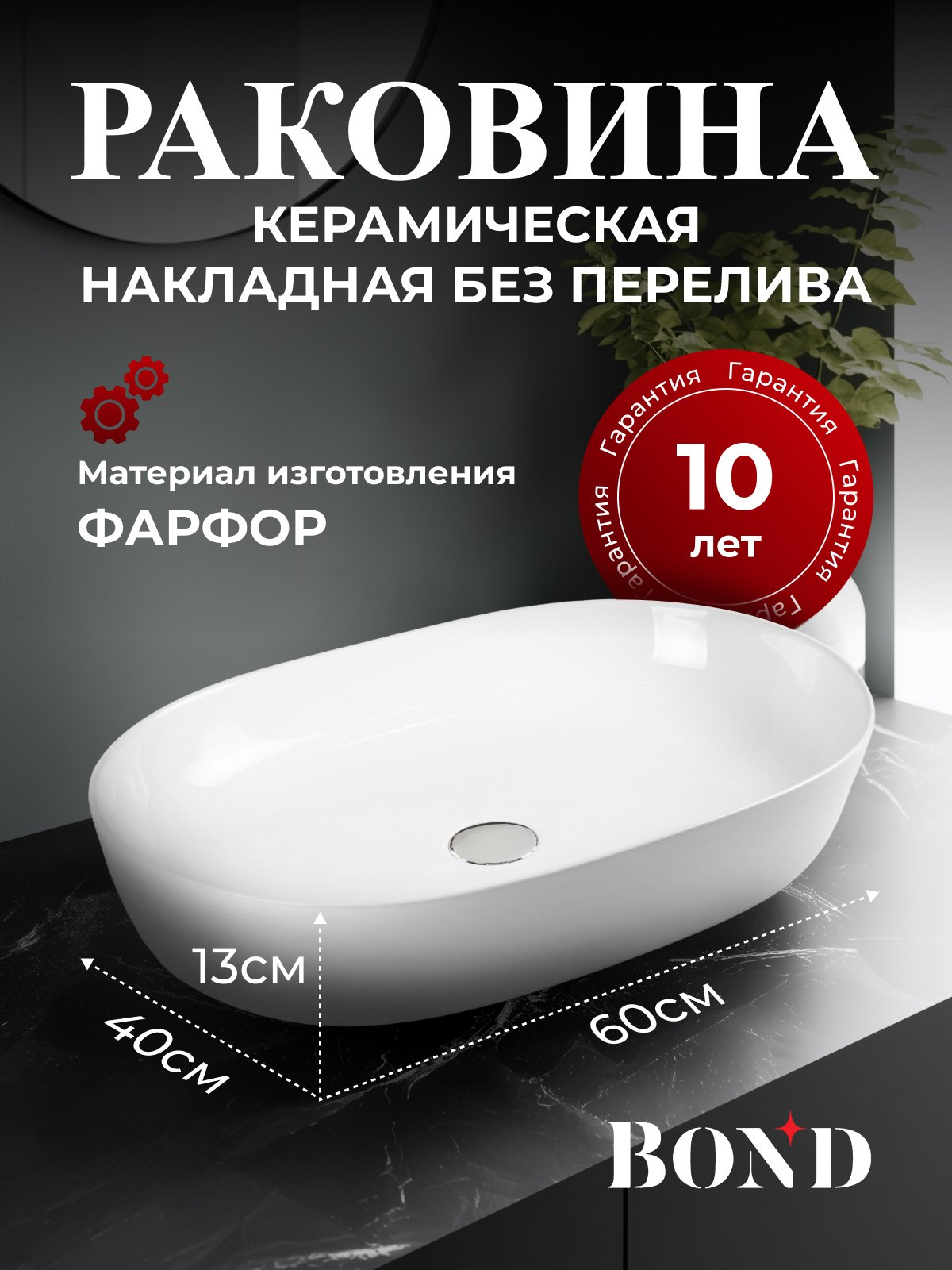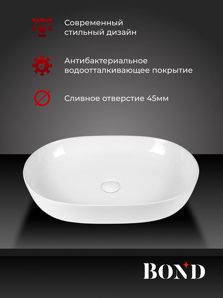 Отзывы о Накладная раковина BOND Овал S51-600 60 белая, овальная